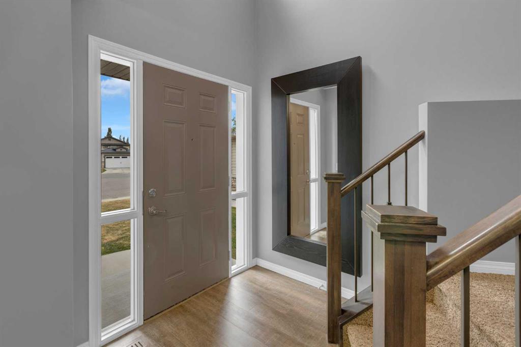 Welcome to 330 Ranch Garden – the perfect family home tucked away at the end of a quiet cul-de-sac in The Ranch, Strathmore, with only the attached garage sharing a common wall. From the moment you walk through the front door, you’re greeted by a grand entrance and sweeping staircase that set the tone for this inviting two-story. The main floor has been refreshed with new flooring and features a bright living room anchored by an upgraded fireplace and mantel – the kind of space that invites cozy evenings together. West-facing windows in the living and dining areas fill the home with natural light, while the large kitchen – complete with granite countertops, extra cabinetry, and new appliances – is designed for family meals and gatherings. Everyday life is made easier with a spacious mudroom, laundry, and half bath tucked off the attached garage. Step outside and enjoy the west-facing backyard with mature trees for privacy, a large deck for summer barbecues, and plenty of room for kids or pets to play. Upstairs, three bedrooms offer comfort and space for the whole family. The primary suite is a true retreat with its own ensuite and walk-in closet, while two additional bedrooms share a full bathroom – perfect for kids, guests, or a home office. The lower level is unfinished, offering a blank canvas to make it your own, with bathroom rough-ins already in place. With its thoughtful upgrades, welcoming layout, and family-friendly location, 330 Ranch Garden isn’t just a house – it’s a place to put down roots and grow together.
