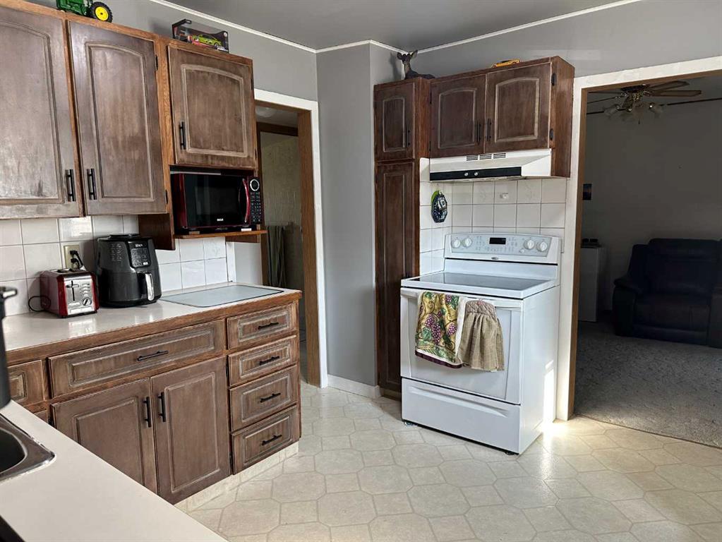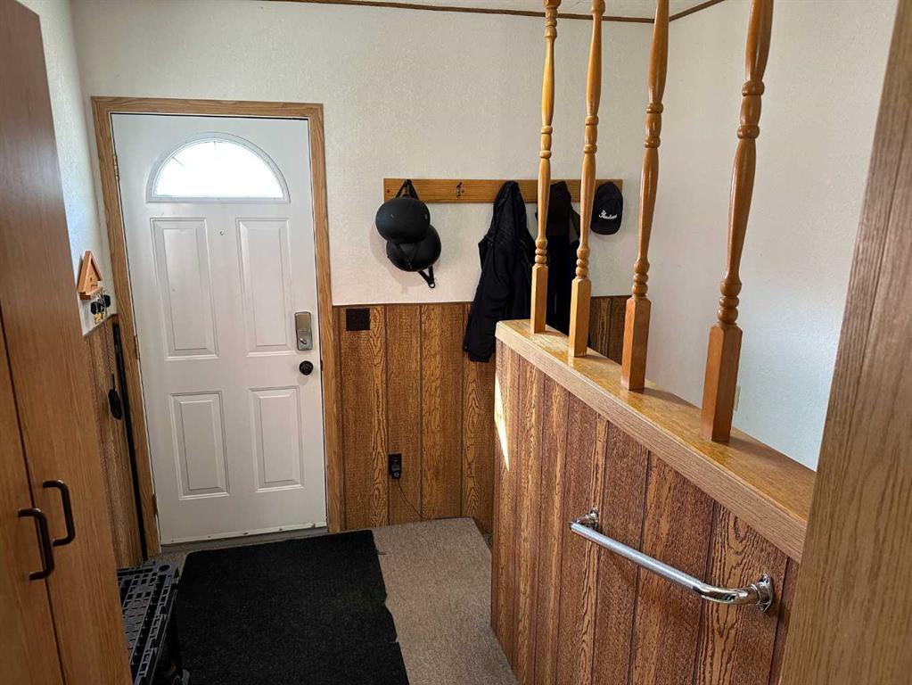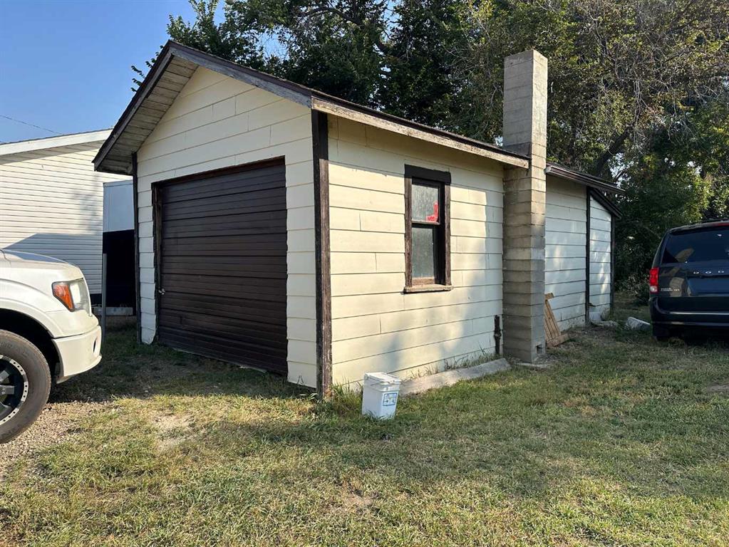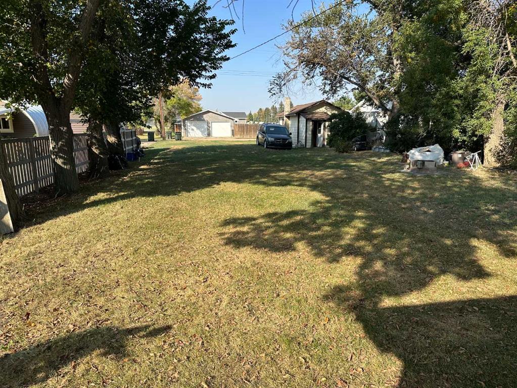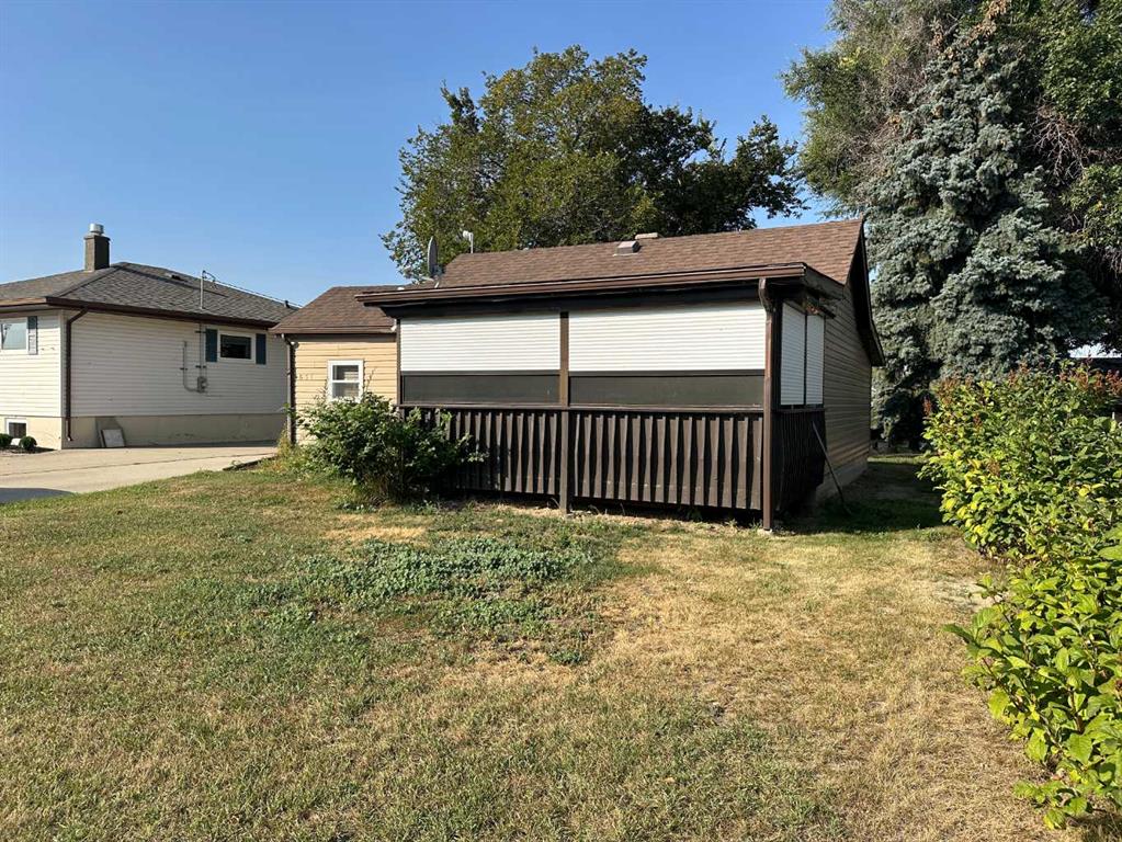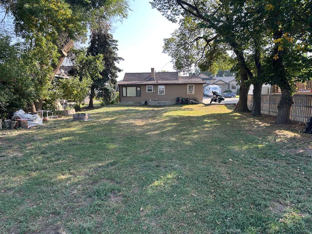 Time to own a HOME! Or keep this as a rental and build on the land later. Affordable and do-able. This little bungalow is almost 7 Square Feet and is located in the quiet town of Vauxhall just steps north of the school. The lot is 50\' x 190\' with plenty of space for a large garage, garden or possibly a mother in-law suite. The main floor hosts a spacious entry way, kitchen with ample cabinets, a large primary bedroom with 2 closets, a 4pc bathroom and dining/living room with patio doors to a covered deck to enjoy during most seasons! In the full basement you\'ll find an office or hobby room, second bedroom, 3pc bathroom, laundry room and storage. The exterior, electrical, plumbing and windows have all been updated already for peace of mind. Mature trees shelter the yard and there\'s a single garage out back that looks as though it could have been a house at one time. The possibilities are endless so plan a visit!