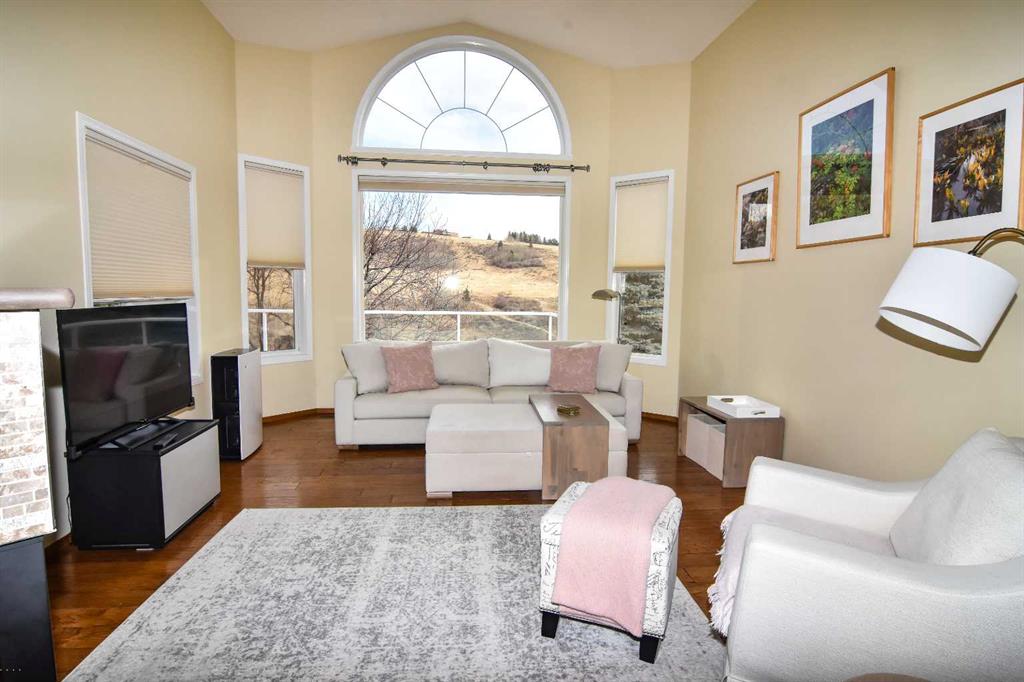 Additional highlights include a heated epoxy garage, new garage door, Hunter Douglas window coverings, Central A/C, new dishwasher and microwave, and Suncoast retractable outdoor screens (upper and lower). Just minutes to Cochrane and a quick jaunt to Calgary, this immaculate Talisman-built bungalow will not disappoint. Welcome to 91 Gleneagles Terrace - your new address!