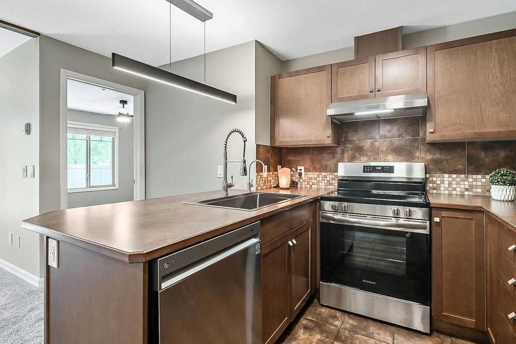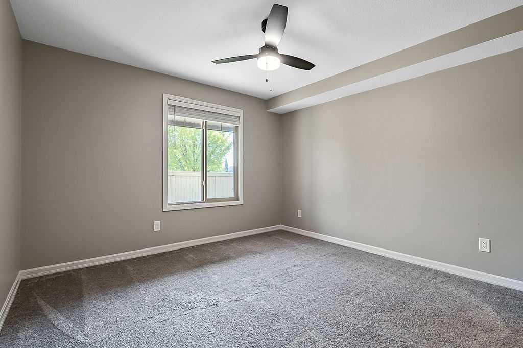 Welcome to this beautiful 2 bedroom, 2 bathroom end unit condo with thoughtful updates and a smart floorplan designed for comfort and privacy. Each bedroom and bathroom are located on opposite sides of the unit, making it ideal for roommates or guests. This home comes with two parking stalls, one interior and one exterior, along with both in-suite storage and an additional storage cage. Inside, you will love the long list of upgrades, including a new washer & dryer, refrigerator, stove, and range hood, a reverse osmosis water system, and a stainless Chef Sink with custom attachments. Added features like California Closets, LED counter lighting and LED lighting throughout, window coverings, ceiling fans in both bedrooms, and a rustic ceiling beam bring character and style throughout. The unit has been freshly painted (walls and ceilings), the carpet was replaced in 2023, and it’s completely clean, tidy, and move-in ready. The floorplan is enhanced by a clever flex space which is perfect for a home office, yoga nook, playroom, or extra storage. The laundry is neatly tucked away in its own closet, adding to the smart design. Step out onto your private east facing patio to enjoy your morning coffee in peace. As an end unit, you’ll appreciate having only one neighbor beside you, adding to the quiet and private feel. Beyond the unit, the community itself is second to none, offering lake access and a welcoming neighborhood environment. If you’ve been searching for a stylish, upgraded condo with parking, storage, privacy, and community amenities, this is the one to see. Ensure you allow yourself enough time to enjoy the complex. Have a stroll through the gym, hot tub and sauna area, social room and games room. When you are in the parkade ensure you look at your parking stall, storage cage and the resident\'s car wash. It would be hard to not enjoy living in this environment.