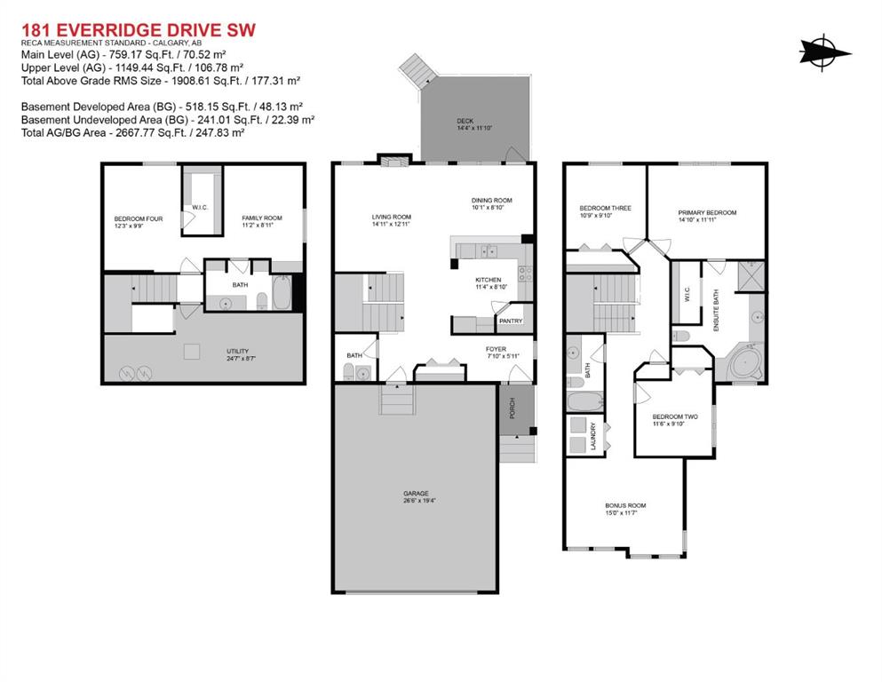 Welcome home to 181 Everridge Drive SW! Located in the sought-after, family-friendly community of Evergreen, this fully finished duplex is the perfect blend of functionality, style, and space. With over 2400 sq. ft. of developed living area, this home offers 4 bedrooms and 3.5 bathrooms, providing more than enough room for everyone in the family. Step inside and be welcomed by a spacious entryway with built-in niches that set the tone for the thoughtfully designed open floor plan. Rich hardwood flooring flows seamlessly through the main level, leading you into a bright, expansive space. The kitchen is a chef’s delight with stainless steel appliances, a raised eating bar, corner pantry, full tile backsplash, and espresso cabinetry. A lovely division between the kitchen and formal dining area creates a beautiful flow, while oversized windows flood the space with natural light and provide views of the large backyard. The living room features a cozy gas fireplace with a wood mantle and tile surround, perfect for gathering on cooler evenings. Upstairs, discover three generous bedrooms including the spacious primary retreat with a 4-piece ensuite featuring a large soaker tub, oversized stand-alone shower, and walk-in closet. The impressive bonus room, located over the garage, is filled with windows and overlooks the peaceful greenspace across the street – the perfect spot for a home office, playroom, or media lounge. A convenient second-floor laundry room completes this level. The fully finished basement provides the ideal setup for an older teen, guests, or extended family with a fourth bedroom, full bath, walk-in closet, and a private media room – creating a comfortable, self-contained retreat. Outside, enjoy the large backyard with an oversized deck, perfect for entertaining, BBQs, and summer evenings under the stars. Evergreen is one of Calgary’s most desirable communities with schools, shopping, restaurants, and Fish Creek Provincial Park just minutes away. Quick access to major routes makes commuting easy while still letting you enjoy the peace of a mature neighborhood. This meticulously maintained home is truly move-in ready – a perfect combination of space, comfort, and location!