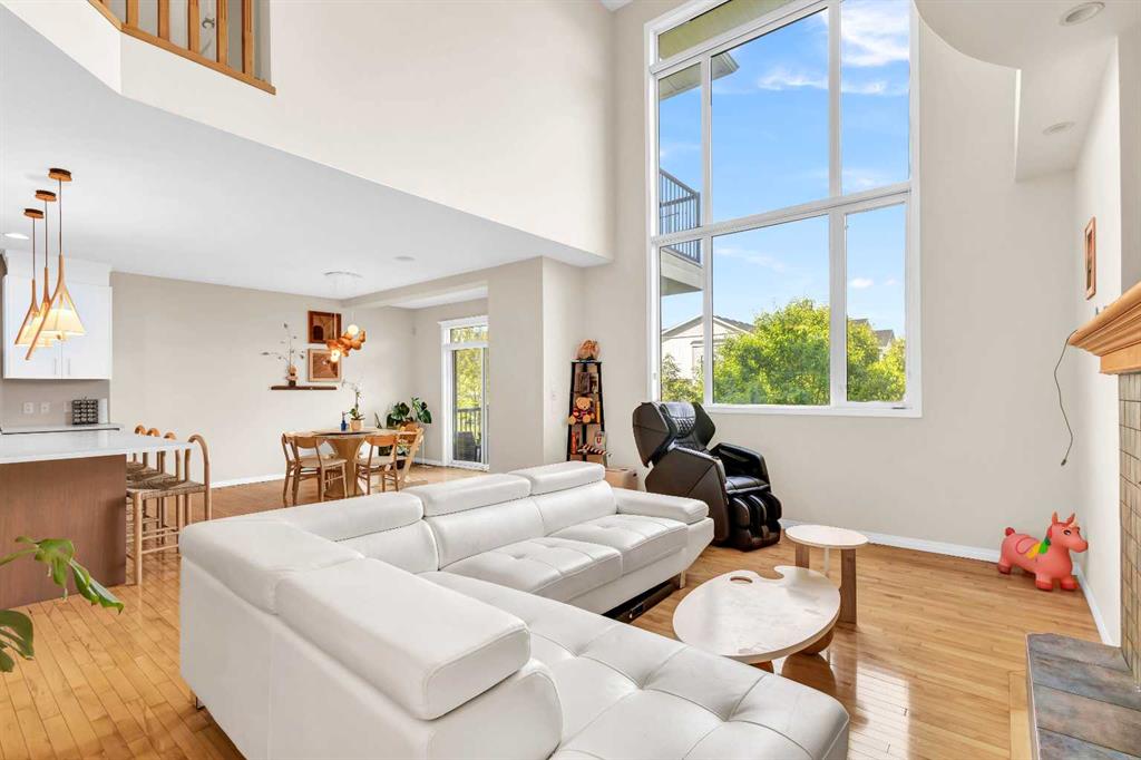 The open-concept main floor impresses immediately with 23-foot ceilings, expansive windows, and abundant natural light. The chef-inspired kitchen features a walk-through pantry, generous counter space, and an ideal layout for both entertaining and everyday living.