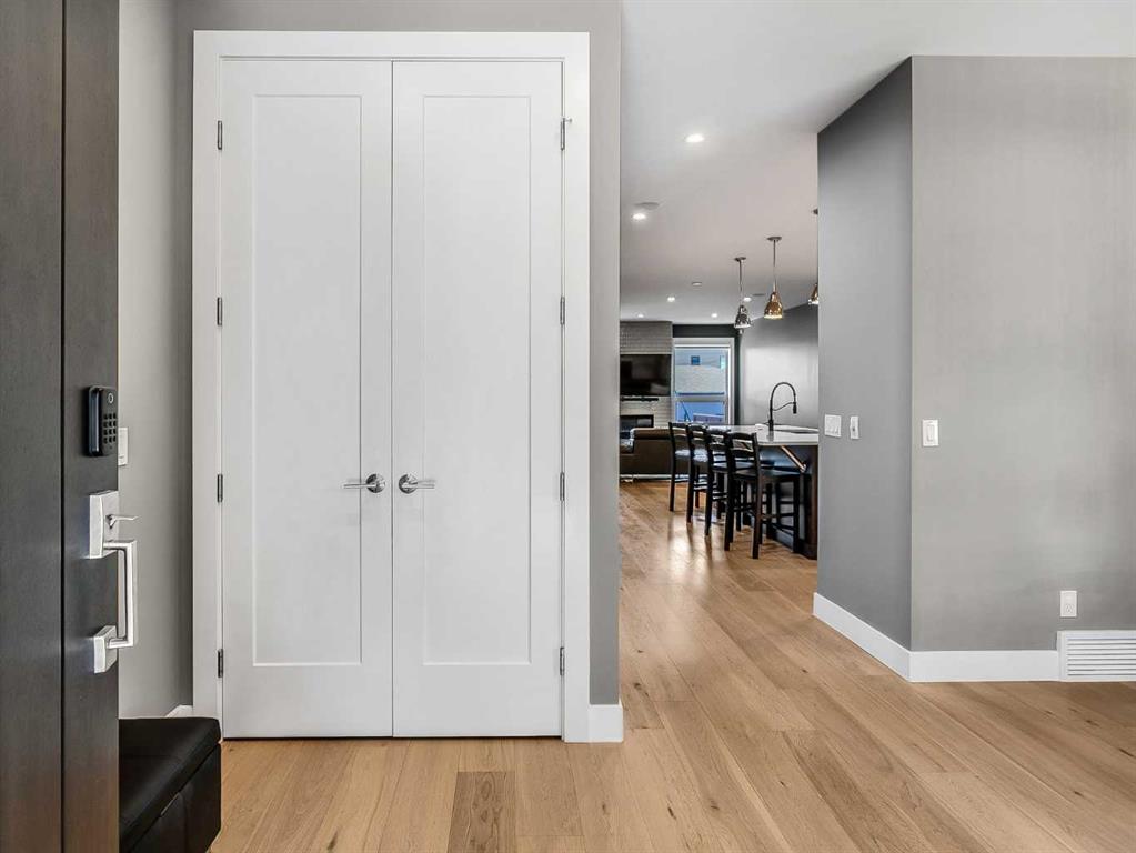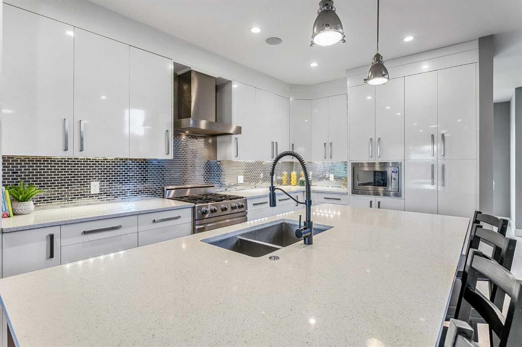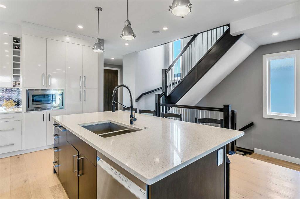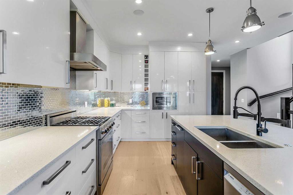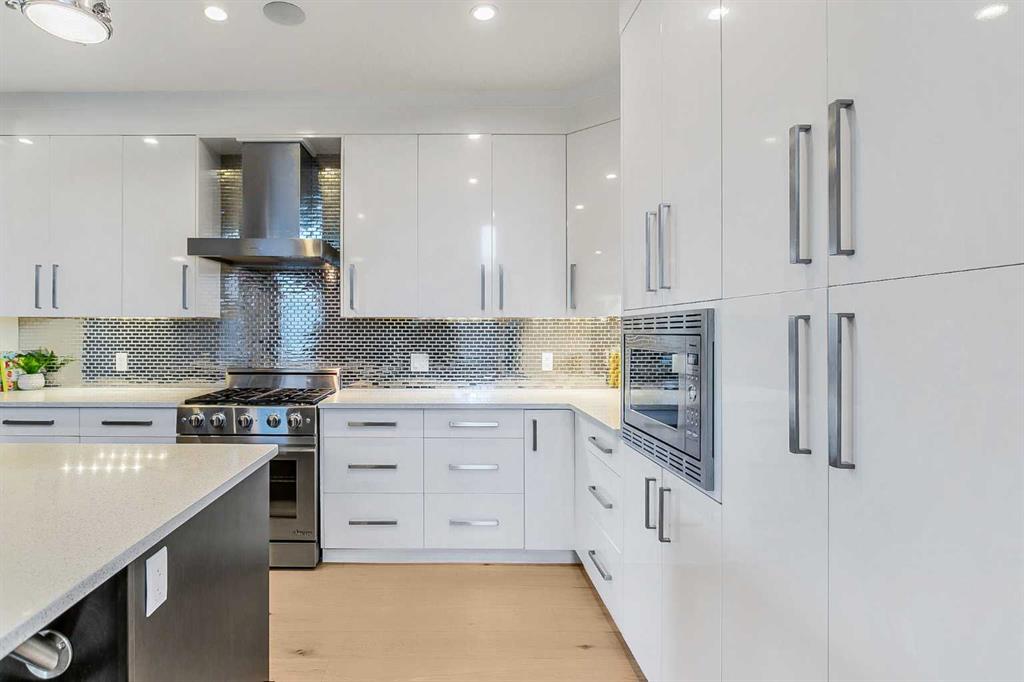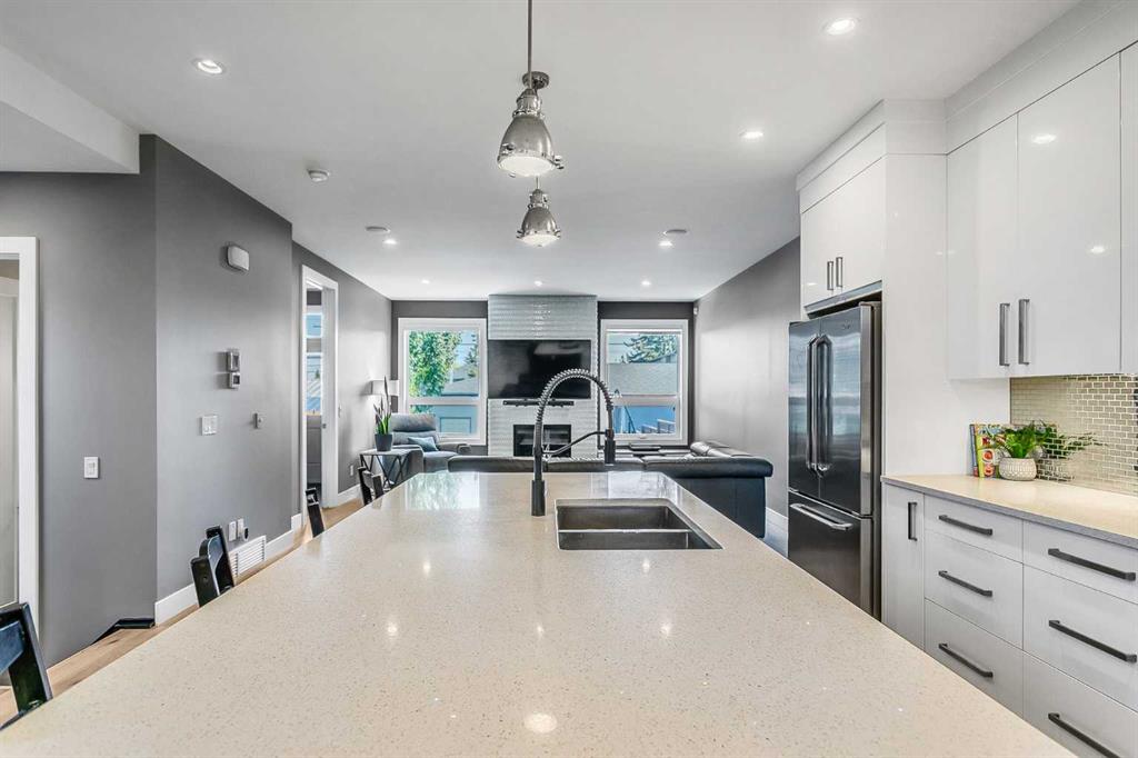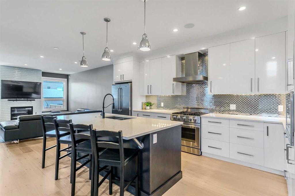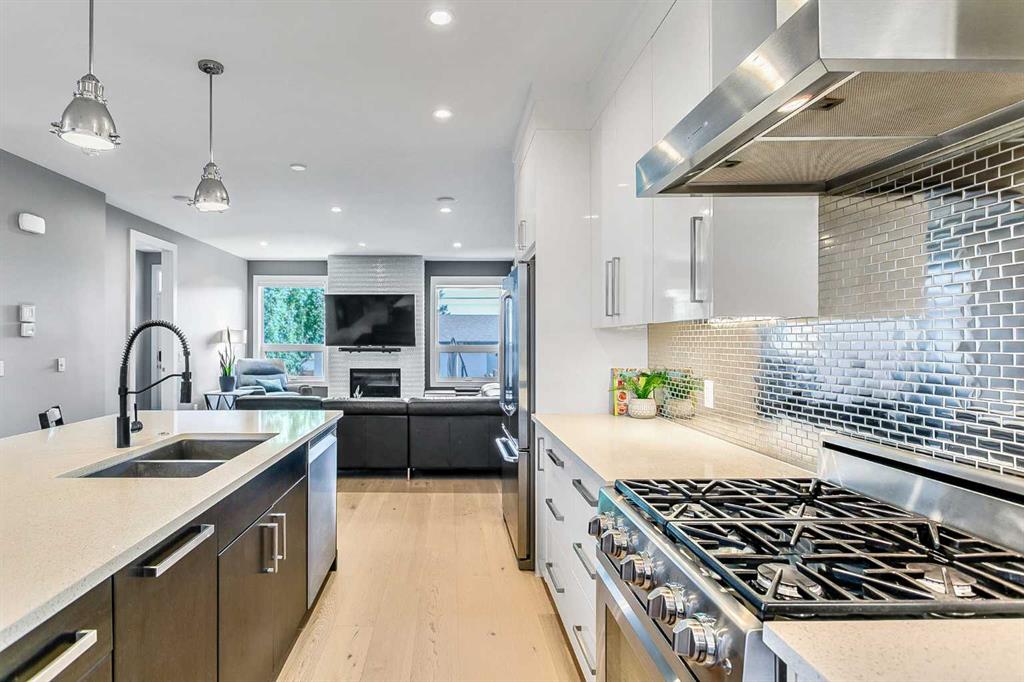 This gorgeous home is in a phenomenal location in the mature community of Rosscarrock, within walking distance to schools, parks, Westbrook mall, the LRT station, the Nicholls Family Library, and the community hall. The property has meticulous landscaping and a private backyard oasis. Beautiful wide plank engineered hardwood floors, tall 9’ ceilings, 8’ doors and an abundance of natural light provide a warm and welcoming first impression. The front flex room overlooking the street offers versatility as a formal dining room or home office. Culinary creativity is inspired in the stunning chef’s kitchen featuring quartz countertops, full-height cabinetry, dove tail drawers, a gas cooktop, high-end Dacor stainless steel appliances, and a large centre island with seating. A centred floor-to-ceiling tile fireplace flanked by windows invites everyone to gather in the living room, where built-in speakers set the mood for relaxing or hosting. Step outside to the ground-level patio, complete with outdoor speakers and a BBQ gas line for convenient entertaining. This private outdoor space is surrounded by lush landscaping and mature trees, all tucked behind the double detached garage. Practical design continues with an enclosed mudroom to keep seasonal clutter hidden away. A sunny skylight illuminates the stairway leading to the upper level. Convenient upper floor laundry has ample storage, folding space, and a sink. The primary suite is an indulgent retreat with a spacious layout, a custom walk-in closet, and a luxurious ensuite featuring dual vanities, a deep soaker tub, a separate 10mm shower, and a skylight for endless natural light. Two additional bedrooms (one with its own walk-in closet) share the well-appointed 4-piece main bathroom. The basement is ready for your dream development with two windows, 9’ ceilings, and a 3-piece bathroom rough-in. Additional upgrades include a brand-new central air conditioning unit (the quietest version available), freshly painted throughout, Grohe faucets throughout, central vacuum, triple-pane windows & custom window coverings. This beautiful yet practical home truly has everything on your wish list, plus an unbeatable location close to 17th Avenue and Bow Trail while still being sheltered from the noise, giving you the best of both worlds.