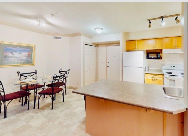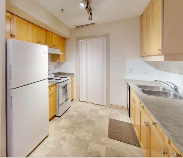 Welcome to Riverwalk Villas. Enjoy the riverside in this main floor unit with 2 spacious bedrooms and 2 full bathrooms. Spacious and bright kitchen with plenty of counter and cupboard space. The living room features patio doors leading to you large private balcony perfect for quiet mornings or evening barbecues. The master bedroom is an impressive size with a walk-through closet and full 4 piece ensiuite. There is a large secondary bedroom and another full bathroom. The building is secure and has undergone many recent renovations leaving owners very satisfied with the results. The unit includes 1 underground heated parking stall. Enjoy walks or biking along the river or on the paths throughout downtown and other areas of Fort McMurray. Walking distance to major retail stores and shopping including an elegant restaurant just walking distance from the building. If you are starting out, this is the perfect home or you can purchase as an investment and all furniture can remain in the unit.