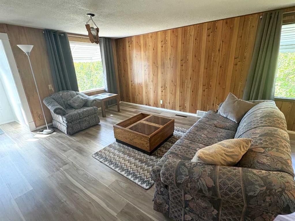 Check out this cute family bungalow. 897 sqft. Three bedroom, two bathrooms. Main floor features spacious kitchen. Large dining/living room. Two nice size bedrooms. Four piece bathroom with extra storage cabinets. In the basement you have one more bedroom. A three-piece bathroom. Family room. Two nice storage rooms and a cold room. You will truly enjoy your private backyard. Have your morning coffee on your front or back deck. There is a natural gas connection for your barbeque on the back deck. The double detached garage has 220 V power with back lane access and RV parking. Some renos over the years include shingles, electrical, flooring, front deck. Enjoy the peace and quiet of small town living in the quaint community of Galahad.