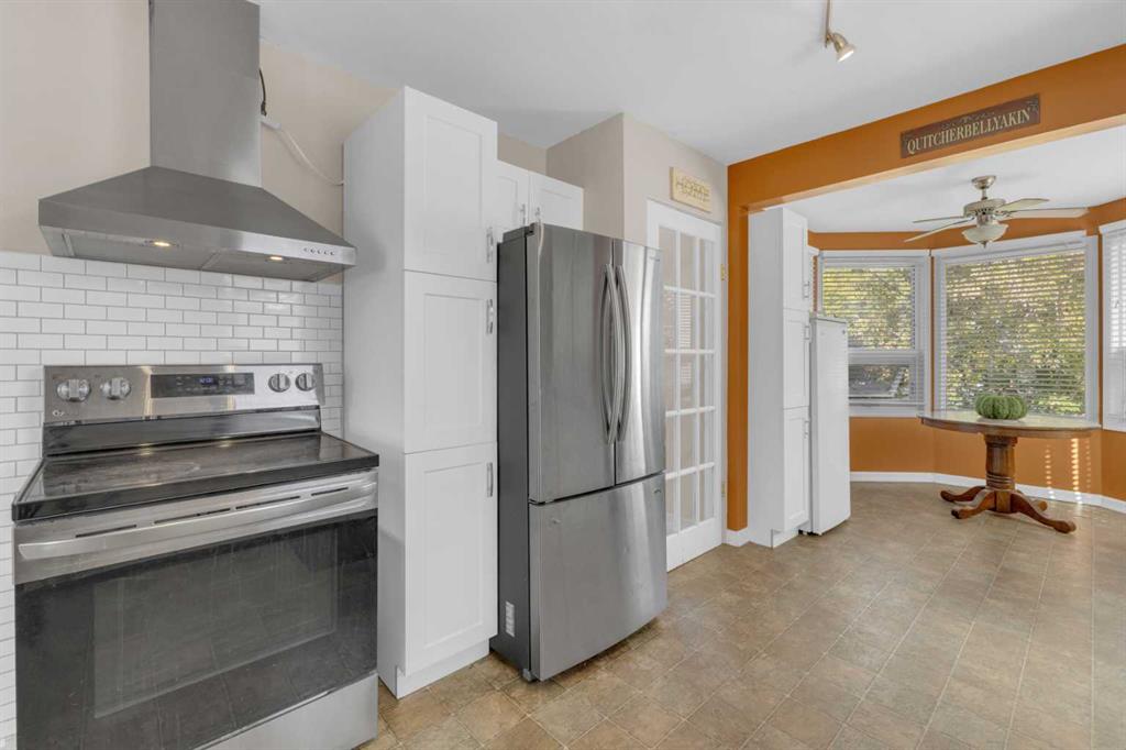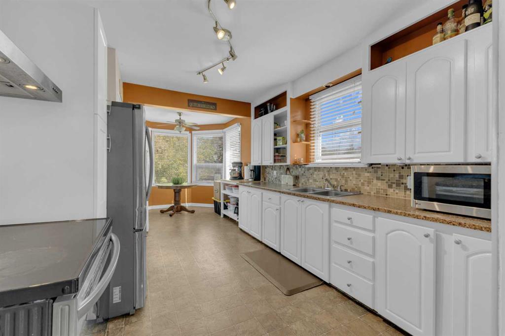 Attention first time home buyers and investors!! Here is a great opportunity to own a cute little bungalow on one of the prettiest streets in Ponoka. There have been some great updates including brand new roof, eavestrough, soffit and facia. The main level welcomes you into an adorable foyer that opens into a large living room with tons of natural light flowing through. The kitchen and extended dining area/breakfast nook are functional and look out into the large back yard with several large windows – so Natural Sunlight fills this charming home! The bathroom has been updated with a wonderful 6ft soaker tub and then there is a great sized primary bedroom – suitable for a KING sized bed with built-in closet and a second bedroom on the main floor – perfect for the kids or home office. The basement has been finished and is a great hangout spot for the teenagers or family and friends. There is a large family room, a large bedroom and a 3-piece bath. The large utility room/laundry room balance out the basement space and give you a lot of options for storage. Outside you get the benefit of being in an older and mature part of town…..HUGE YARD!! Tons of space for you to create the backyard of your dreams, or keep it simple and low maintenance. There is a single detached garage in the back and an additional off-street rear parking space. There is power ready for your future hot-tub, and a fully fenced yard to keep the kids and pets contained. This home is super solid and a great starter!!
