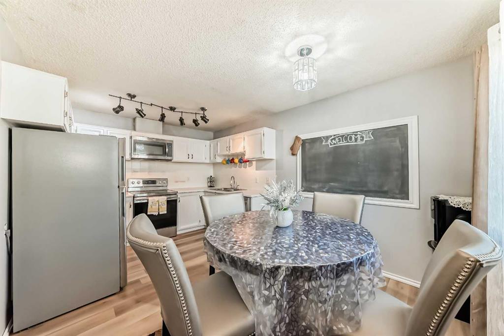 Beautifully maintained townhouse offers an open-concept main level perfect for modern living. Relax in the cozy living room featuring a corner gas fireplace, with patio doors leading to your private fenced backyard. The kitchen is a chef’s dream with sleek white cabinetry, stainless-steel appliances, and an adjacent dining nook for family meals. Upstairs, find three spacious bedrooms with laminate flooring, including a large master retreat complete with a walk-in closet and completed with a 4pcs main bath.