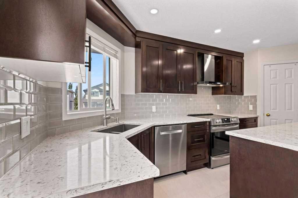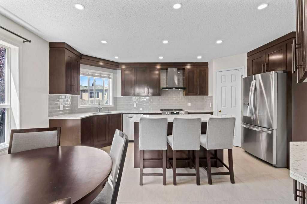 Welcome to your beautifully maintained , move in ready home, located in the highly desirable community of Arbour Lake — Calgary’s only NW lake community offering 4-season recreation right at your doorstep. This spacious and thoughtfully designed home with over 2600 Sqft of living space, combines timeless charm with practical family living. Step inside and you’re greeted by a generous main floor den, ideal for a home office or quiet reading nook. The great sized living room impresses with soaring high ceilings, gleaming Tigerwood hardwood floors, bright bay windows that flood the space with natural light, and a cozy gas fireplace that seamlessly connects to the dining area — perfect for hosting family dinners or special celebrations. The large, bright kitchen is a true standout with its stylish recent updates, including dark cabinetry contrasted by a crisp, light backsplash and elegant quartz countertops. Stainless steel appliances, a spacious island, corner pantry, and sunny breakfast nook make this kitchen as functional as it is beautiful — a welcoming space where everyone will want to gather. Upstairs, the primary bedroom is a true retreat featuring vaulted ceilings, a second gas fireplace for extra warmth and ambiance, a walk-in closet, and a well-appointed, updated 4-piece ensuite. Two additional bedrooms provide plenty of space for family or guests; one even has sliding doors leading out to a covered deck — the perfect spot to enjoy your morning coffee. A full 4-piece bathroom completes this level, and both upper baths have been tastefully updated with quartz counters, modern fixtures, and efficient dual-flow toilets for added comfort and style. The fully finished basement expands your living space with a huge family room, a modern 3-piece bathroom featuring a sleek glass shower, and a spacious fourth bedroom with its own walk-in closet — ideal for a teen, guests, or hobby space. Step outside into your fenced southwest-facing backyard where mature trees offer privacy and shade while you relax or entertain on the deck. The double attached garage is insulated, perfect for Calgary winters, and there’s plenty of storage throughout the home to keep life organized. Enjoy the unbeatable lifestyle Arbour Lake offers — spend summers swimming, paddleboarding, and fishing at the private lake, or enjoy skating and ice fishing in the winter. You’re also steps away from excellent schools, the Crowfoot shopping district with restaurants, groceries, YMCA, library, and the LRT for an easy downtown commute. Don’t miss this incredible opportunity to own a beautifully maintained, move-in ready family home — with updated kitchen and bathrooms — in one of NW Calgary’s most sought-after communities!