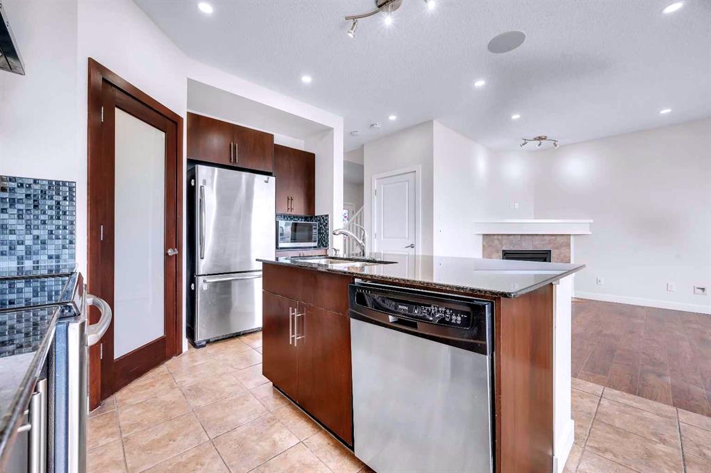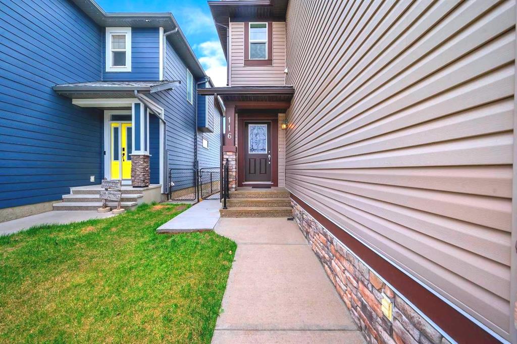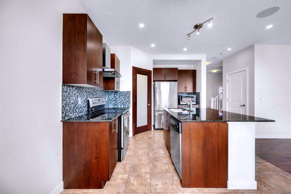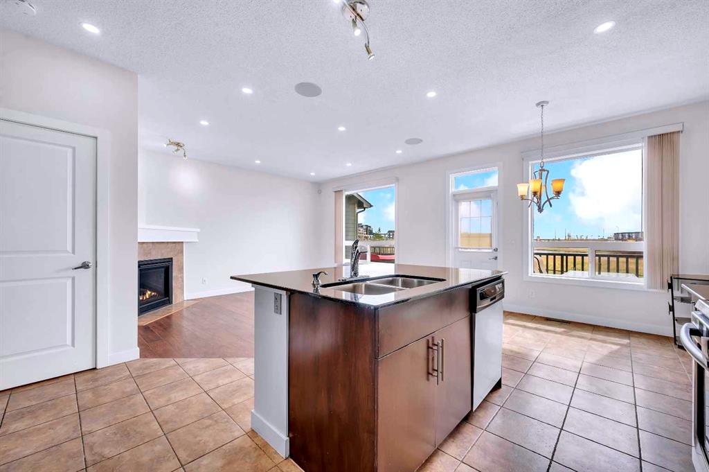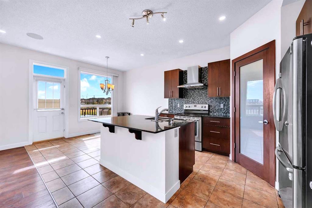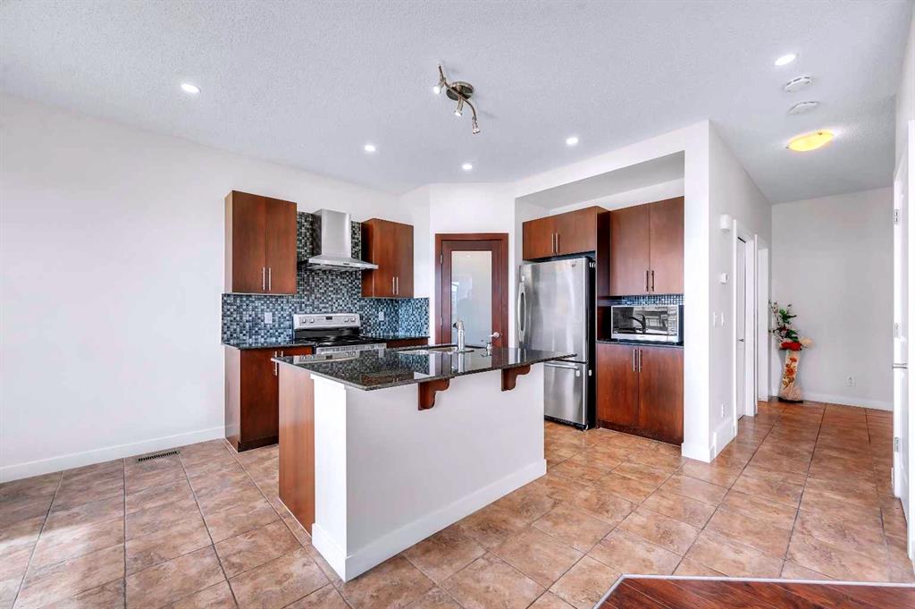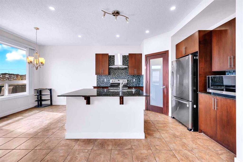 Stunning family home in the desirable community of Skyview Ranch, backing onto peaceful GREEN SPACE and a beautiful water POND! This impeccably maintained property offers the perfect blend of comfort and functionality. Step inside to a bright and inviting main floor featuring a cozy living area ideal for relaxing or entertaining, an open-concept kitchen, and a highly functional SPICE KITCHEN with a gas stove, dedicated sink, and separate range hood — perfect for passionate cooks. Enjoy meals in the charming dining area while taking in amazing views of the greenery. A convenient 2pc bath and direct access to the HEATED DOUBLE GARAGE complete the main level. This home also comes equipped with a CENTRAL A/C unit and WATER SOFTENER for added comfort. The fully fenced backyard features a spacious DECK and PATIO, perfect for outdoor gatherings and enjoying the serene surroundings. Upstairs, the spacious primary bedroom offers an amazing view of the green space behind, along with a 4pc ensuite. Two additional well-sized bedrooms, a full 4pc bath, and recreational area (can be used as additional bedroom) provide ample space for the whole family. The BASEMENT with SEPARATE ENTRANCE is ideal for extended family or rental potential, offering heated floors, a large recreation room, full kitchen, 3pc bathroom, and extra storage space. Located close to schools, shopping, public transit, the airport, and offering easy access to Stoney Trail, this home truly has it all. Transit bus services 145, 128, and 136 are just steps away, making commuting a breeze. Schedule your showing today and seize the opportunity to make this incredible home yours!