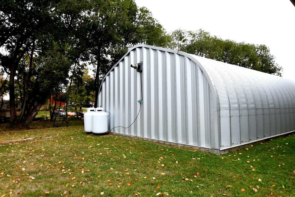 Pavement all the way to this small acreage with clean house and excellent quality outbuildings! The spacious bungalow has metal roof, large windows, and solid siding. It has 2 large bedrooms and 2 bathrooms. It has a spacious open concept kitchen, dining, living room with a wood burning fireplace that is a focal point of the room and multiple large east and south facing windows for a bright room. The kitchen has lots of cabinets with some built in features and designated spaces for an upright freezer and water cooler as well. Partial basement is clean and great for extra storage or could be further developed. Charming country curb appeal with the large solid wrap around decking. Just off the deck to the east is a good start on your very own outdoor sauna. There is an additional workshop/shed (12 x 25) with rolling and man door, has power and is heated with its own pellet stove. The garage/shop (25 x 40) has cement floor, insulated, and heated. Situated on the outskirts of historic Markerville. This area is known for its charm! Walking distance to the Medicine River, the trails and bridges, community events for those needing social connection with an active community association with once a month potlucks, seasonal barbeques and celebrations, and the community lead Christmas Eve gathering at the historic church. There is a daily coffee club at the Creamery that runs every day year round. You can be part of a friendly rural community or lead a quiet private life (if that\'s what you prefer).
