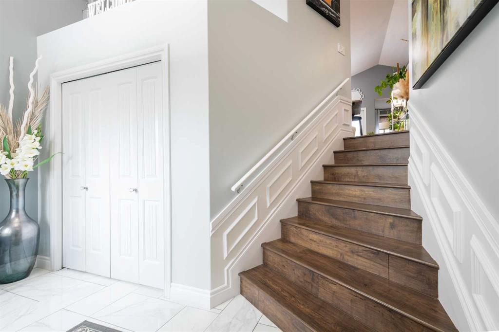 At just under 1600 sq. ft. this modified bi-level offers a lot of extras and offers that extra space that many families need. This home is purely move in ready and has had a lot of attention to details. A bright spacious tiled foyer greets you upon entry offering space for guests coming and going, the angled staircase with decorative wainscotting makes you immediately feel at home. You\'ll enjoy the large island, granite counter tops, back splash, corner pantry, stainless steel appliance package with gas cooktop and high ceilings. The natural light flows. Imagine the coziness you\'ll feel from the stunning electric fireplace with decorative floor to ceiling stone and the dining area is perfect for those who enjoy entertaining. A full bathroom and two bedrooms complete the main floor. Onto the spacious deck, you\'ll appreciate knowing it\'s maintenance free, and sit and relax on the lower patio. The upper master retreat offers a spacious bedroom, 3 pce ensuite, and large walk in closet. The fully finished basement is perfect for every family, with huge family room, two very large bedrooms, a full bathroom, more granite. a stunning laundry area within the utility room. The heated garage and double concrete drive finish of this corner lot into a culdesac. This home is air conditioned and has a water softener. Don\'t miss this chance to own in Lakeside.