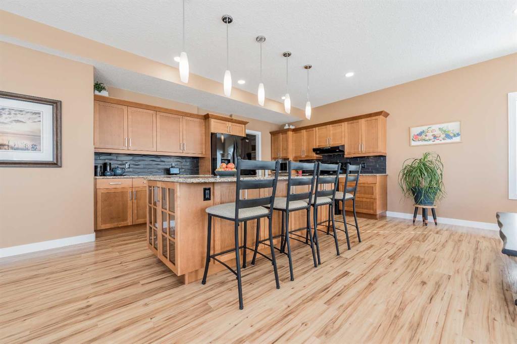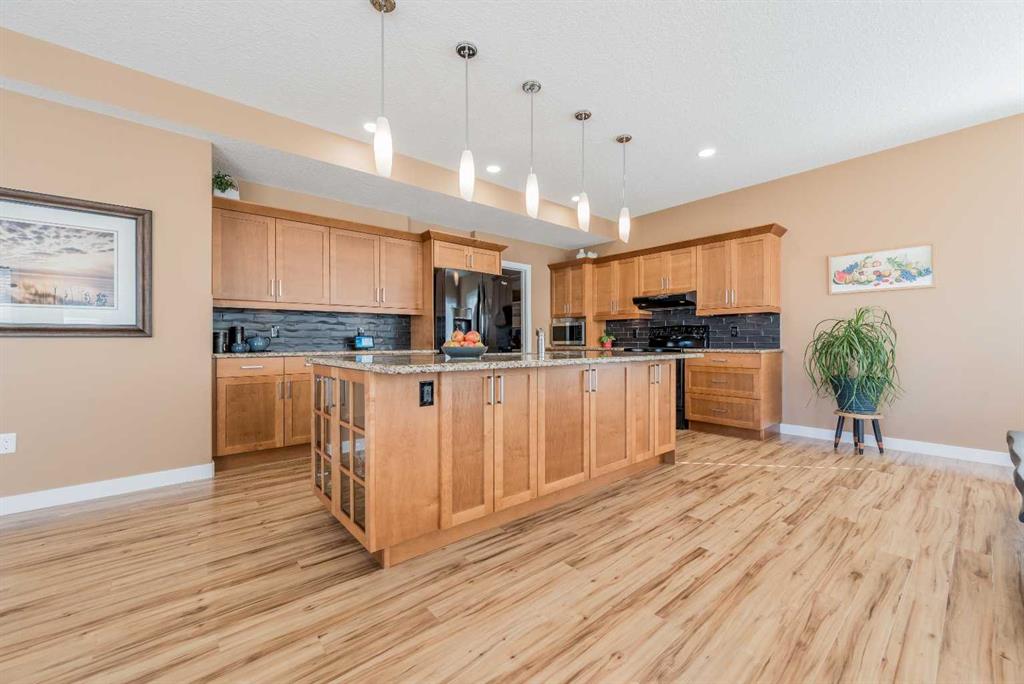 With no neighbours to the west and open views to the north, this home is just a short and quiet stroll from the lake and offers direct trail access. Designed for memorable gatherings, the home features an impressive 8-foot kitchen island, abundant cabinetry, beautiful granite countertops, and a spacious walk-through pantry conveniently located next to the three-car garage. The mudroom is perfect for storing outerwear throughout the seasons, ensuring simple organization for busy family life.