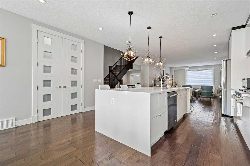A rare opportunity in Montgomery — semi-detached home stands out with four fully finished levels, nearly 4000 sqft of developed living space, a private balcony, and a long list of premium upgrades. Steps from the Bow River pathway, Shouldice Park, Market Mall, and minutes to both Foothills and Children\'s Hospital, this location is as connected as it is private. Inside, the home is finished with luxury Canadian maple hardwood on all upper levels, layered lighting (including updated LED fixtures), and fresh paint throughout. The main floor showcases a sleek chef\'s kitchen with JennAir stainless steel appliances, including a gas cooktop, built-in oven, chimney hood fan, and integrated microwave. A full walk-in pantry, with double doors, and extended island with waterfall quartz complete the space. The spacious living area offers floor-to-ceiling windows and a gas fireplace framed by custom tile. The second level hosts dual primary suites, each with walk-in closets and five-piece ensuites featuring full tile, deep tubs, and separate glass showers. A bonus room with custom built-in shelving and a full laundry room with storage complete this level. On the top floor, a third bedroom, with its own 5 pc ensuite, walk in closet, and dedicated office that\'s open to a private rooftop balcony with unobstructed views. The fully developed basement includes a fourth bedroom, full bath, in-floor heating, large rec room with wet bar and beverage fridge, and extra storage. Additional upgrades include: newer high-capacity heat pump system, Kinetico water softener, dechlorinator, purified drinking tap, security cameras (x4), dual doorbell cams, Hunter Douglas window coverings and a freshly painted interior. Detached garage and landscaped yard, with a large deck and beautifully tended garden complete the package.