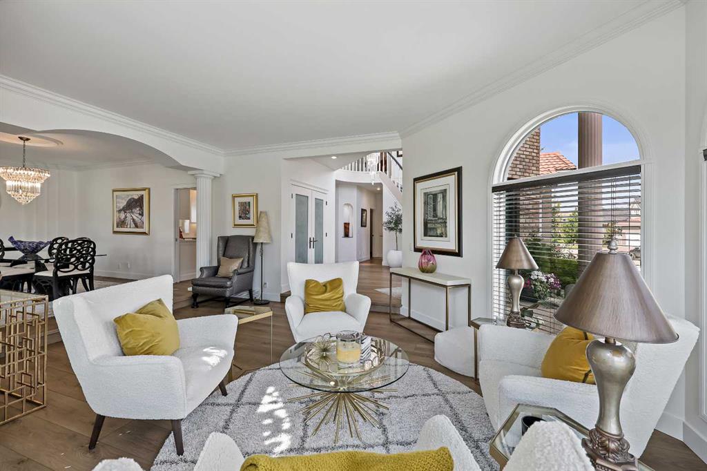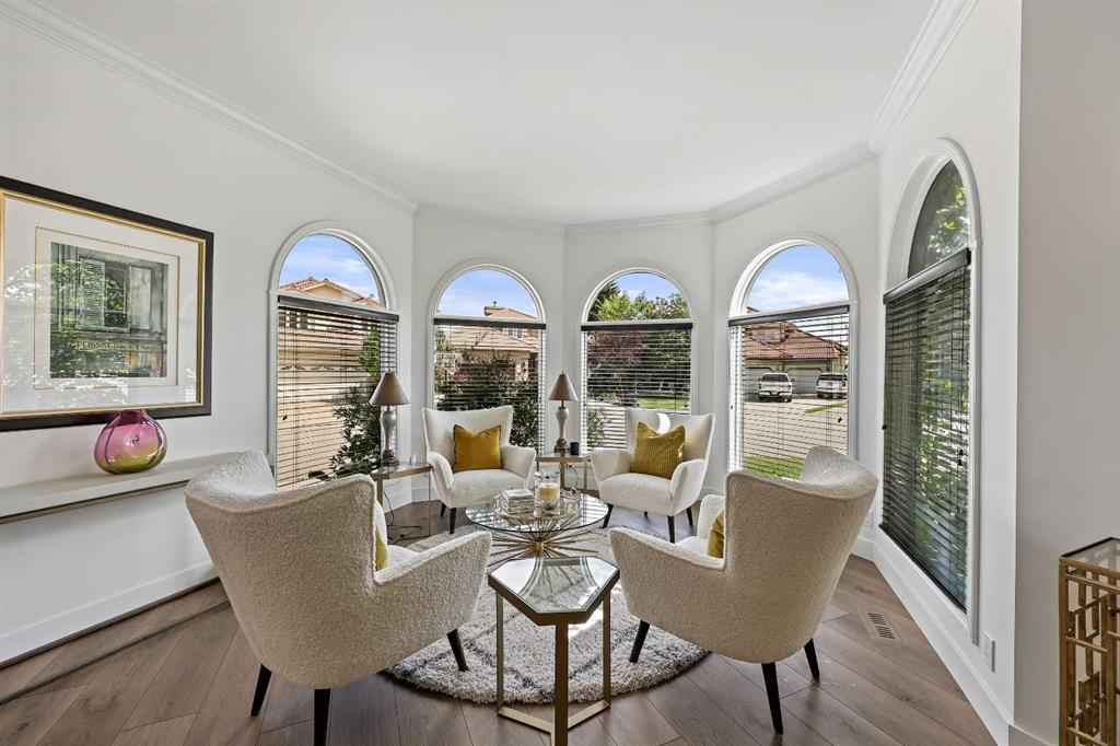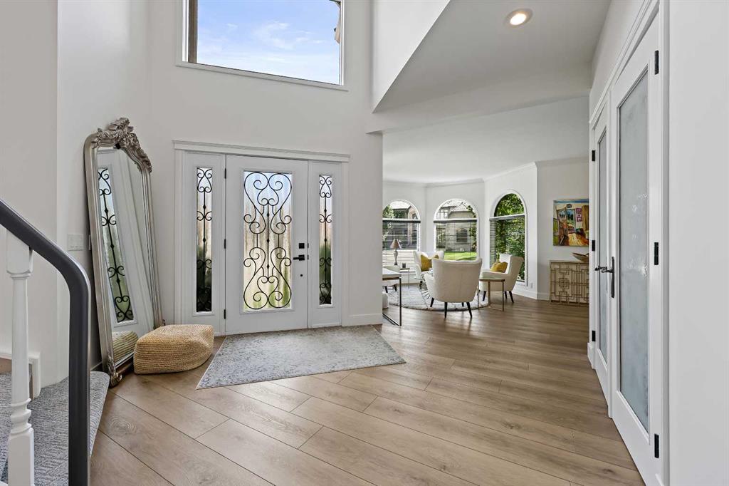 Nestled in the prestigious Uplands at Hawkwood, this custom-built luxury estate has been meticulously renovated, delivering a refined standard of living in one of Calgary’s most sought-after communities. Located on a serene cul-de-sac corner lot, this home boasts impressive curb appeal with manicured landscaping, a stately oversized triple-car garage, and elegant exterior detailing that sets the stage for what lies within.