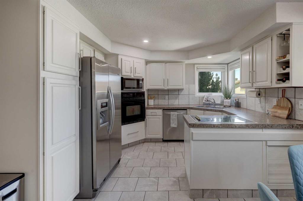 Situated on a quiet Keyhole Crescent. Discover this stunningly renovated walk-out home, a move-in ready with over 3,075 square feet of developed living space. This immaculate two-story residence is designed for both comfort and luxury, offering four spacious bedrooms and 3.5 bathrooms. From the moment you step inside, you\'ll be greeted by a soothing, neutral palette that highlights the gorgeous laminate flooring and elegant architectural accents. The main floor is a true masterpiece of design. A bright and airy living room, with its vaulted shiplap wood & beam ceiling, and skylit lofted area, invites an abundance of natural light. The kitchen is a chef\'s delight, boasting ample counter and cabinet space, numerous vinyl windows, and a cozy breakfast nook. For more formal gatherings, the separate dining room area provides the perfect setting for memorable family functions and large dinner parties. Adjacent to the kitchen, the relaxing family room features custom built-in cabinetry and opens onto a large deck with calming, scenic views. A convenient two-piece powder room, a laundry room complete this level. Upstairs, the focus is on relaxation. The primary suite is a private retreat, featuring elegant French doors, a beautifully updated four-piece ensuite bathroom w penny round tile backsplash quartz counters, Air Jett tub and a large walk-in closet. Two more generously sized bedrooms, one with its own walk-in closet, a four-piece main bathroom, and a tranquil lofted den area offer plenty of space for family and guests. The fully developed walk-out basement is an incredible bonus, providing a fourth bedroom, a three-piece bathroom, a bonus room, and a spacious recreation room. The walk-out grants direct access to your low-maintenance, landscaped backyard, which backs onto a serene walking path, perfect for an active lifestyle. Oversized, heated, double attached garage w mezzanine (12\' high ceilings w the mezzanine removed could likely accommodate a car lift for seasonal car use, additional parking) and separate entrance to the rear yard. Additional gravel pad in the front of your home (on the left, in front exterior photos). Nestled on a quiet cul-de-sac, this home is surrounded by parks, pathways, schools, and playgrounds, creating the ideal environment for a family. Storage shed is included. Convenience is at your fingertips, with Beddington Towne Centre and Shopping Centre just moments away. With parking for up to five vehicles and an array of exquisite features, this beautifully designed and meticulously maintained home is ready for you to create new memories. Don\'t miss your chance to live in luxury and comfort—book your showing today!
