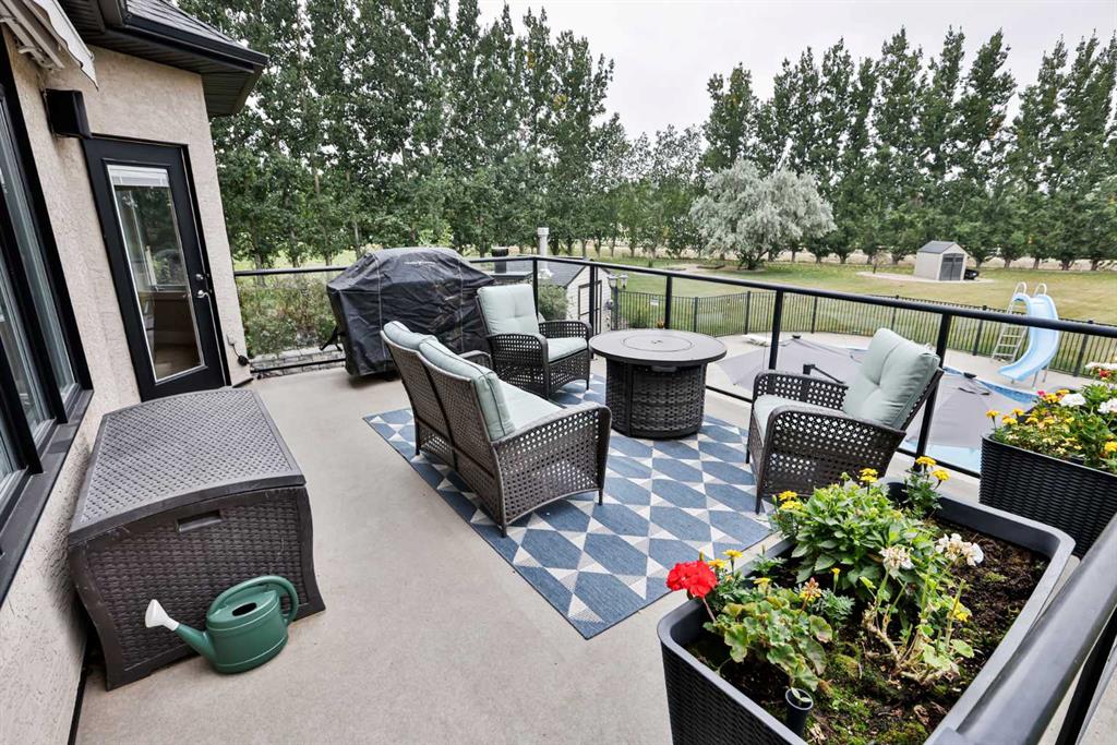 Step outside to your own backyard oasis: a heated inground saltwater pool for April–October swims, a six-person hot tub with built-in audio, and an 800 sq. ft. composite deck with outdoor fireplace for cozy prairie nights. In winter, the adjacent pond transforms into your private skating rink.