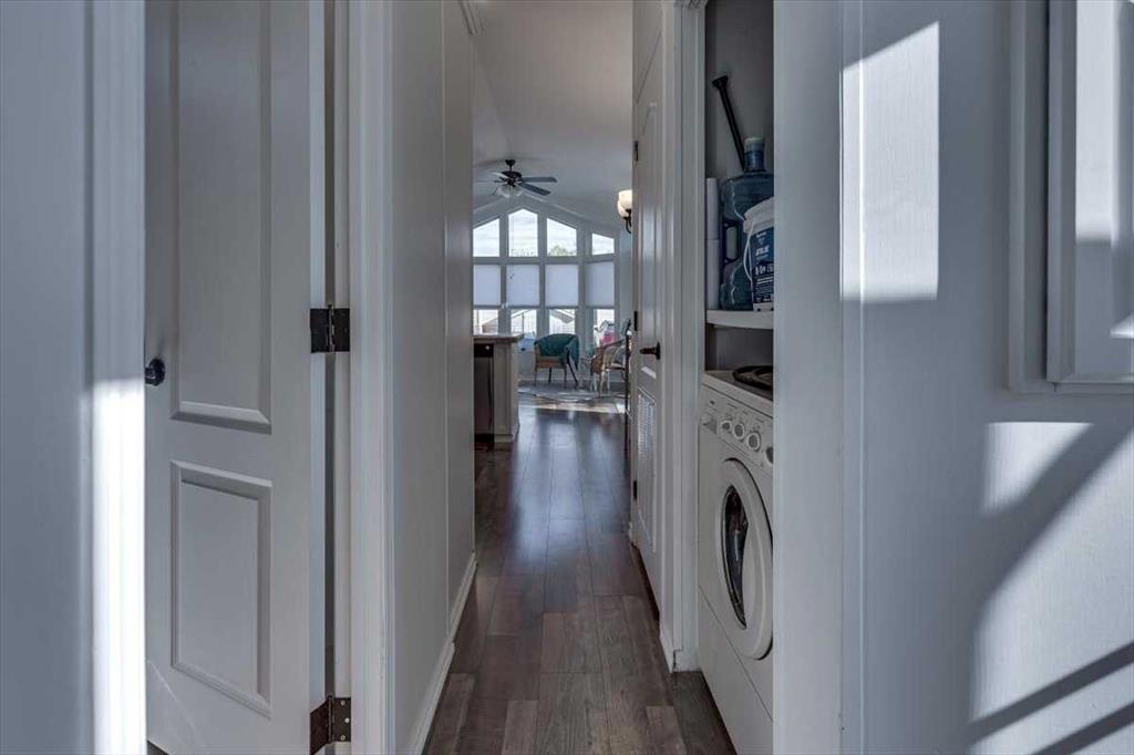 Discover the perfect golf-and-lake getaway at Whispering Pines Golf & Country Club Resort! This charming 1-bedroom, 1-bath park model home offers 563 sq. ft. of updated living space with modern flooring and stylish décor, creating a bright, low-maintenance retreat. Relax or entertain on your private deck while enjoying the peaceful surroundings, then head out for a round on the resort’s 18-hole championship golf course. Whispering Pines is a true four-season destination, featuring a heated pool, hot tub, fitness centre, pickleball court, playgrounds, and sandy beach access on Pine Lake. Monthly condo fees of $210 include water, sewer, garbage, lawn care (May–Sept), snow removal (Sept–May), year-round gated security, and power for the streetlight and pond fountain—so you can focus on fun, not upkeep. Ideally located just 25 minutes from Red Deer and about 90 minutes from Calgary, this property delivers an easy, recreation-rich lifestyle where every day feels like a holiday.