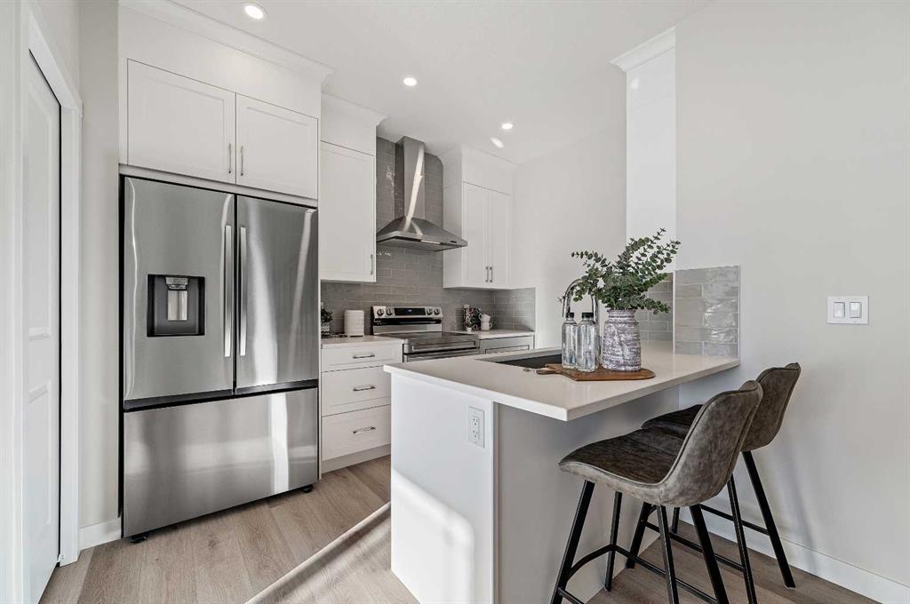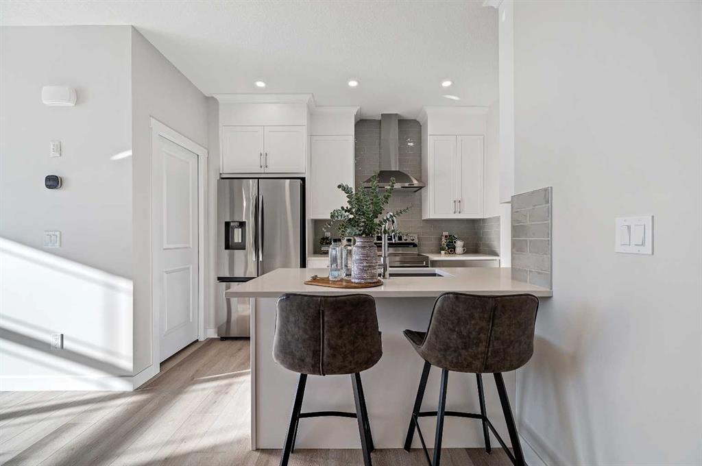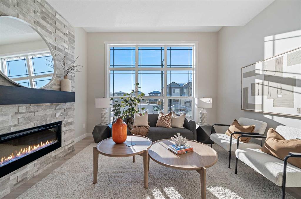 Genesis Builders introduces the Eli - a luxury street-side luxury townhome with NO CONDO FEES! The Eli townhome features an attached double garage and a rooftop patio, offering low-maintenance living. The thoughtfully designed home offers almost 1600 sq ft. plus an unfinished basement with 9-foot ceilings, ready for your ideas. Large windows and soaring ceilings on the main floor let natural light fill the open-concept living space. The chef-inspired kitchen features sleek cabinetry and stone countertops and is well-equipped with stainless-steel appliances. The kitchen is tucked away yet still feels open and inviting, providing ample room for activities in the open-concept dining and living room. A floor-to-ceiling tiled fireplace is the living room\'s focal point. Complementing the main floor is a convenient half bath, storage, and access to the attached double garage, which is large enough for a truck. Venturing upstairs, you will find a spacious primary retreat with a spa-like ensuite featuring a shower, his-and-hers sinks, and a walk-in closet. Two additional bedrooms, a full bathroom, a flex room, a 4-piece bathroom, and laundry facilities complete the upper level. Enjoy spending time on your upper rooftop patio, situated above the garage, which is an excellent space for entertaining. Bayview is a beautiful community with parks, benches and pathways that meander throughout the community and along the canals. Kids and adults alike will enjoy the outdoor basketball nets, gym, amphitheatre, and tennis courts, which will convert into a skating rink in the winter. Come and see for yourself all the amenities the community has to offer!