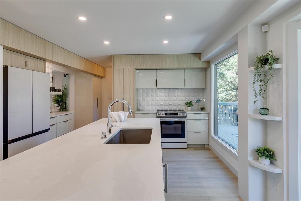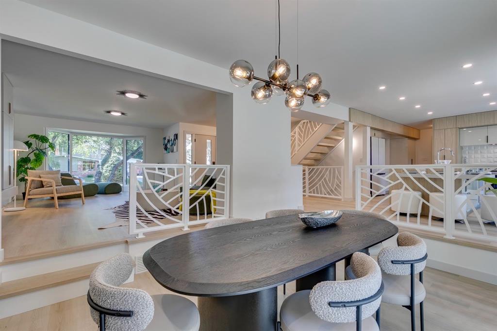Welcome to this one of a kind, fully reimagined home in the heart of Canyon Meadows that\'s nestled on a quiet, family friendly cul-de-sac just steps from EP Scarlett High School. Virtually rebuilt from the studs up, this stunning property feels like a brand new home, masterfully blending high-end materials and modern design with practical family living. Showcasing exceptional curb appeal, you\'re welcomed by a charming front porch and into a spacious foyer with luxury vinyl flooring that flows throughout the main and upper levels. Step into a grand front living room flooded with natural light from a bay window, complemented by a custom built-in media wall that adds both style and function. The adjacent dining area offers the perfect setting for family meals and entertaining, complete with a cozy wood burning fireplace and glass doors that lead to your multi-tiered backyard deck that\'s ideal for alfresco dining and evening relaxation. The show stopping kitchen is a true focal point, designed to inspire any home chef with a massive centre island with breakfast bar seating, luxurious matte quartz countertops, sleek glossy cabinetry, and a premium brand new appliance package. Whether hosting or meal prepping, this space is as beautiful as it is functional. A bright, versatile den is located just off the kitchen and is perfect as a home office, or reading nook, with its own sliding glass door for privacy. Upstairs, you\'ll find four spacious bedrooms including a luxurious primary retreat that truly feels like a private sanctuary. The primary suite features a custom walk-in closet and steps down into a 5pc ensuite complete with a stone soaker tub, skylight, and glass-enclosed his & her shower for a space that rivals the best boutique hotels. An updated 5pc main bathroom serves the remaining bedrooms, offering space and style for the entire family. The professionally developed lower level is designed for comfort and flexibility, featuring a large family/games room with another custom media wall and storage, a fifth bedroom ideal for guests or teens, a stylish 3pc bathroom, and a huge laundry/storage room with ample space for seasonal items and gear. Additional upgrades include new triple pane Lux windows and doors, modern lighting, designer finishes, and thoughtful touches throughout. The private fenced backyard is a peaceful retreat with mature trees, landscaping, and plenty of space for kids and pets to play. Situated in a vibrant, established community known for its parks, pathways, excellent schools, and proximity to Fish Creek Park, this home is a rare opportunity to move right into a newly renovated masterpiece with room for your family to grow. Every detail has been meticulously curated, just unpack and enjoy.