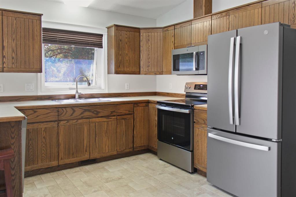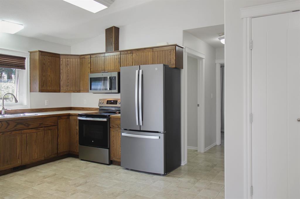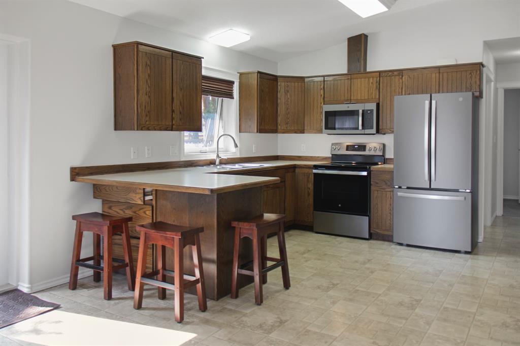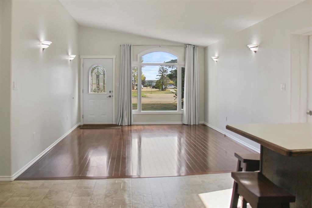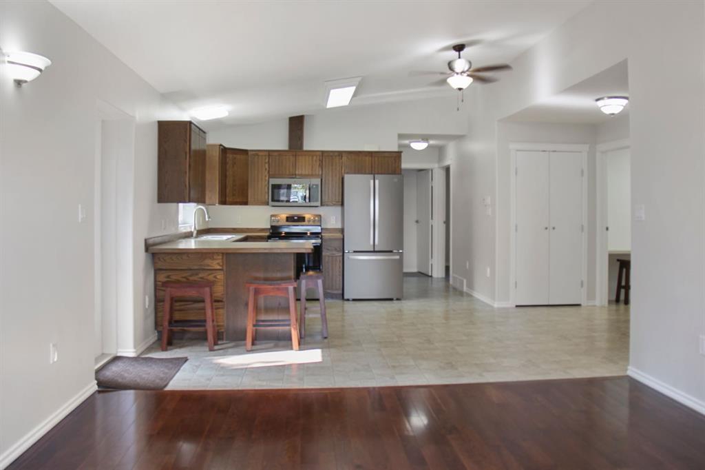 Discover comfort, efficiency, and convenience in this beautifully designed bungalow, built in 2009 with quality ICF construction from footing to rafters. This thoughtfully planned, barrier-free home offers single-level living that’s both practical and inviting. Inside, vaulted ceilings and rich hardwood flooring highlight the spacious living room, while the large kitchen features a pantry, eat-in bar, and easy access to the 10’x24’ deck—perfect for morning coffee or summer barbecues. Bedrooms are finished with carpet for extra comfort underfoot, creating cozy retreats to relax and unwind. The primary suite includes a walk-in closet and a private ensuite with an easy-access shower and built-in bench, making everyday living effortless. A second bedroom and full bath provide flexibility for guests or a home office. Designed with accessibility in mind, this home features 36-inch doors throughout, making it wheelchair-friendly and easy to navigate. Combined with the barrier-free floor plan, it’s ideal for anyone seeking comfort and convenience without compromise. This home is as efficient as it is comfortable—ICF walls make it soundproof, inexpensive to heat in the winter, and naturally cool in the summer. Utilities stay low, and the full-dimension concrete crawlspace provides excellent storage. Outdoors, you’ll find a decorative dyed concrete driveway, a fenced backyard with a garden shed, a raised 16’ garden bed, and a charming front flower bed. Low-maintenance landscaping means more time to relax and enjoy. Located directly across from the Gem Centre, this home is perfect for those looking to downsize without sacrificing quality, storage, or comfort.