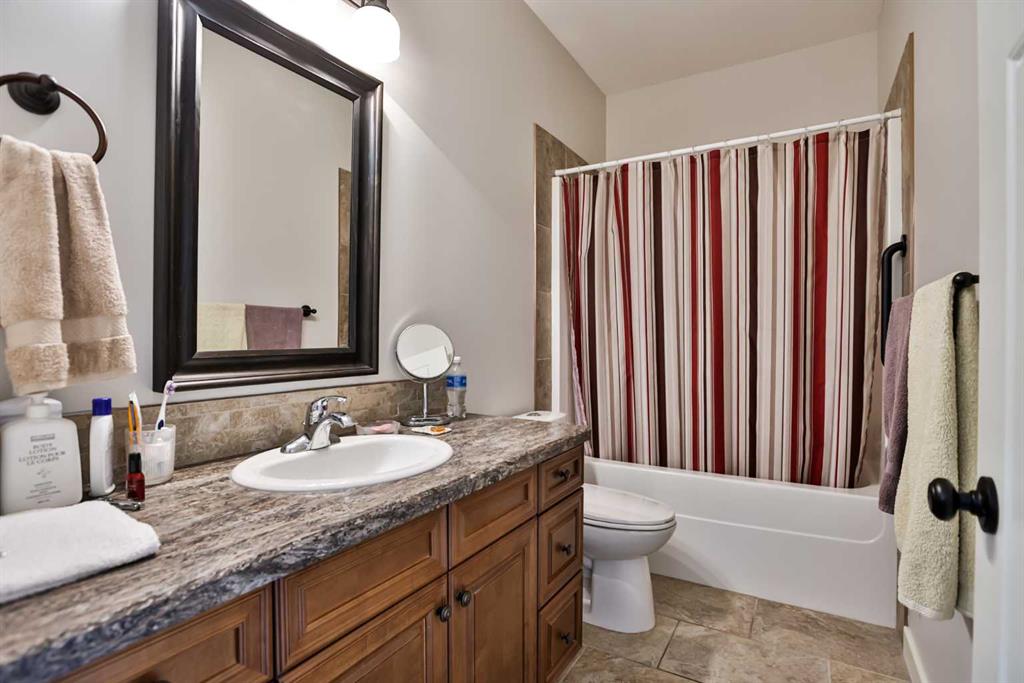 This custom built home has been thoughtfully designed to offer all of the upgrades and conveniences of an executive home with the benefit of a private basement revenue suite. The home\'s large entry archway with front double attached garage and the master suite windows over the garage, give this home fantastic curb appeal. The home\'s appeal is further supported by the superior finishes of Hardie board siding, stone, and metal railing. The main floor has a spacious open design with vaulted ceilings, hardwood floors, and the kitchen, dining, and living areas all open to each other. The kitchen cabinets are a gorgeous rich solid maple stained door with dark countertops and complementing tile backsplash. Appliances are stainless steel with a gas stove, over-the-range microwave hood fan, fridge with water, and dishwasher in the island next to the sink. The kitchen and dining are accented by unique custom lighting. There is a lovely deck just off the living room that is partially enclosed for easy enjoyment. The living room has a corner gas fireplace with custom shelves for cozy easy decorating. This main level also offers a second bedroom, dedicated laundry room, and 4 piece bathroom. The master bedroom is up one more level above the garage, boasting a beautiful large primary bedroom with walk-in closet, and a spa-like ensuite with a jetted tub, double vanities, and a glass door shower. The basement suite, with a private walk-out entry, has tall ceilings with large windows for lots of light creating a bright and inviting feeling. The suite offers 2 large bedrooms, a 4 piece bathroom, it\'s own stacking washer and dryer in a laundry closet, a modest kitchen and eating bar, and a corner gas fireplace. The small backyard is fully fenced with a small covered patio area, a shed, and a private parking pad with convenient back lane access. This custom home has been fabulously maintained with the entire interior of the home having been just freshly painted in a beautiful updated neutral cream tone creating the perfect fresh canvas for you to start decorating. Call your favorite real estate agent today to view.