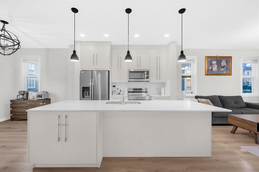 OPEN HOUSE SUNDAY SEP 28, 12pm - 3pm | Welcome to this beautiful CORNER END-UNIT townhome in the vibrant and fast-growing community of Cornerstone, perfectly positioned to enjoy full-day sunshine and directly facing a large park and green space. This spacious 3-level home offers a thoughtful layout with 4 bedrooms, 2.5 bathrooms, and a heated double attached garage. The entry level features a versatile bedroom that can serve as a guest room, office, or flex space, with direct access to the heated garage to keep your vehicles warm during winter. The open-concept second level is designed for both everyday living and entertaining, showcasing a bright and modern kitchen with full-height white cabinetry, quartz countertops, stainless steel appliances, a pantry for extra storage, a dining area, a cozy reading nook, and a large living room that flows seamlessly onto a private balcony overlooking the courtyard—perfect for summer BBQs and relaxing evenings. A convenient 2-piece bathroom completes this level. Upstairs, the spacious primary suite features a walk-in closet and ensuite with floor-to-ceiling tiled shower for a sleek, low-maintenance finish, while two additional bedrooms share a 4-piece bathroom. Laundry is thoughtfully located on the upper floor for added convenience. Large windows throughout the home create a bright and inviting atmosphere, while the location offers easy access to parks, walking paths, and family-friendly green spaces just steps from your front door. Cornerstone is one of Calgary’s fastest-growing communities, with new schools opening in the next two years and potentially a Gurdwara just 3 minutes away, along with convenient access to Stoney Trail, Deerfoot Trail, Calgary International Airport, and CrossIron Mills Mall. Combining comfort, style, and location, this home is the perfect choice for families or anyone seeking a spacious property in a thriving community—schedule your private showing today before it’s gone!