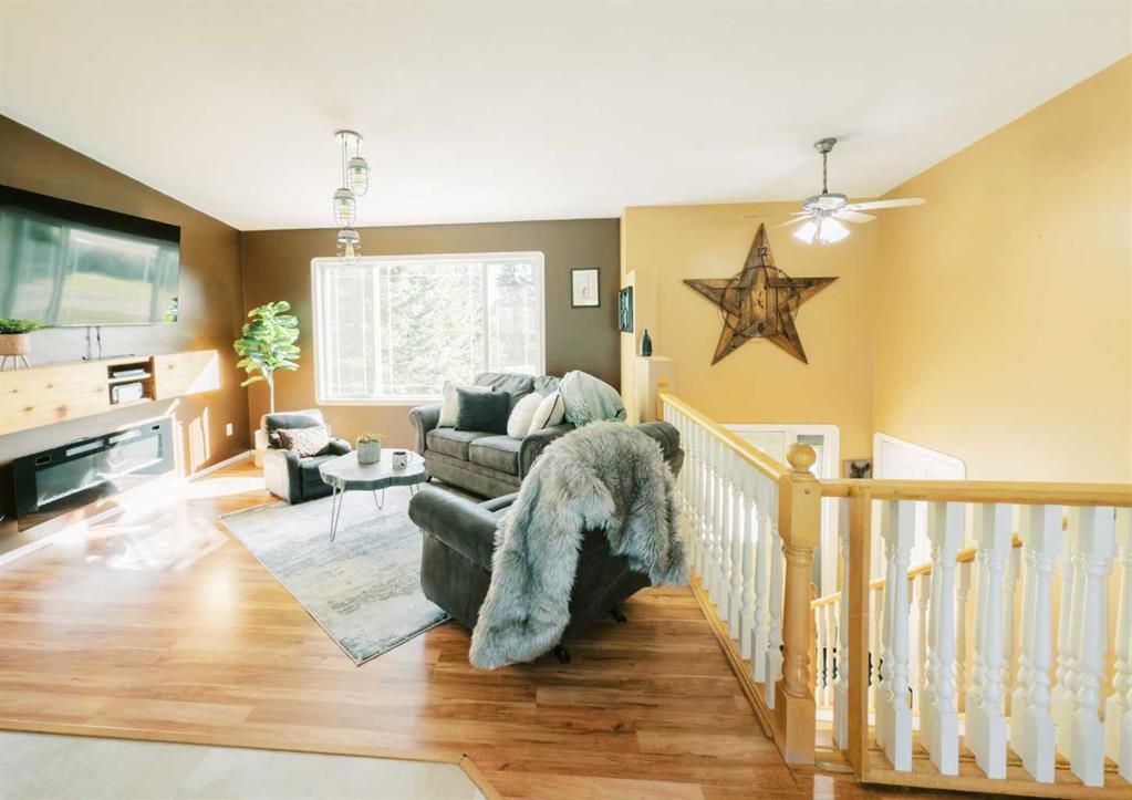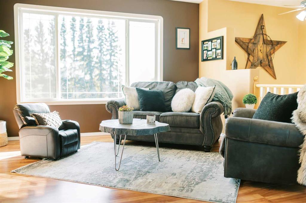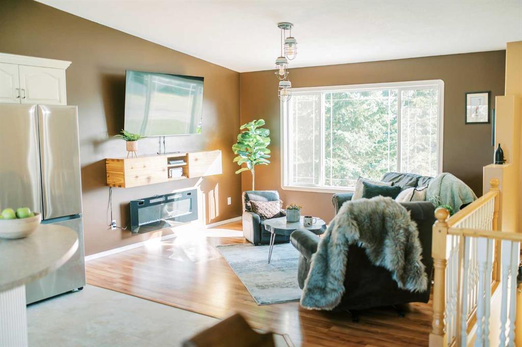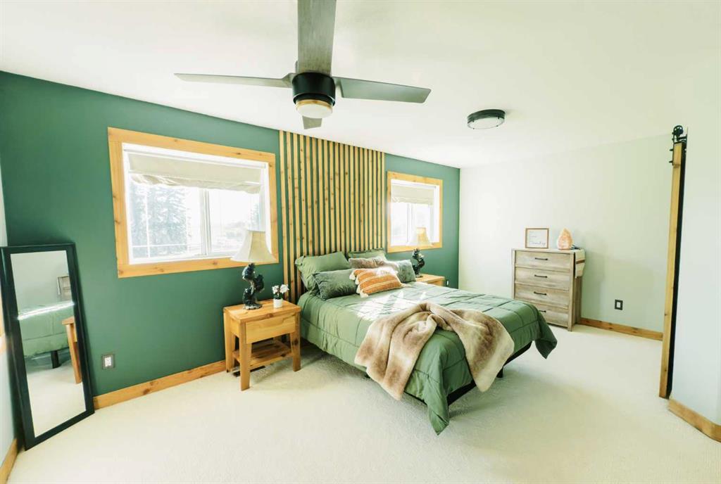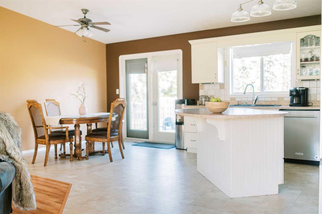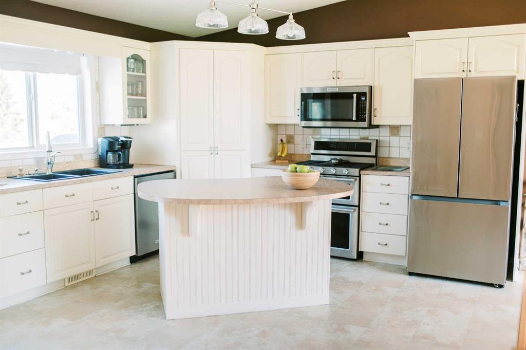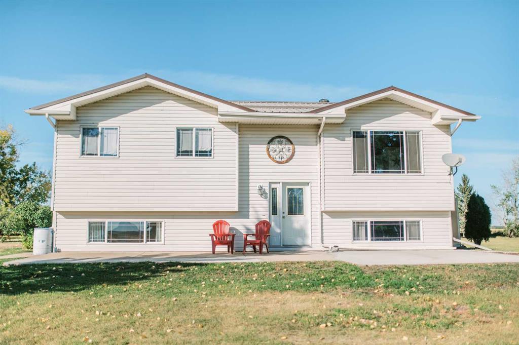 ONLY HALF A MILE OFF PAVEMENT and just 15 minutes SW of Stettler, this beautifully kept 4-acre property is a private oasis completely surrounded by mature trees and a meticulously manicured yard. The 4-BED, 2-BATH BI-LEVEL home offers an OPEN-CONCEPT kitchen, dining, and living area with VAULTED CEILINGS and LARGE WINDOWS that fill the space with natural light. The spacious primary bedroom easily accommodates a king bed with room to spare, and the bright lower level feels nothing like a basement thanks to big, eye-level windows. Step out to the NO-MAINTENANCE BACK DECK—complete with storage underneath and a FREESTANDING POOL—for effortless summer living, or relax on the poured-concrete patio at the front.