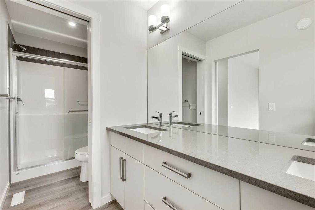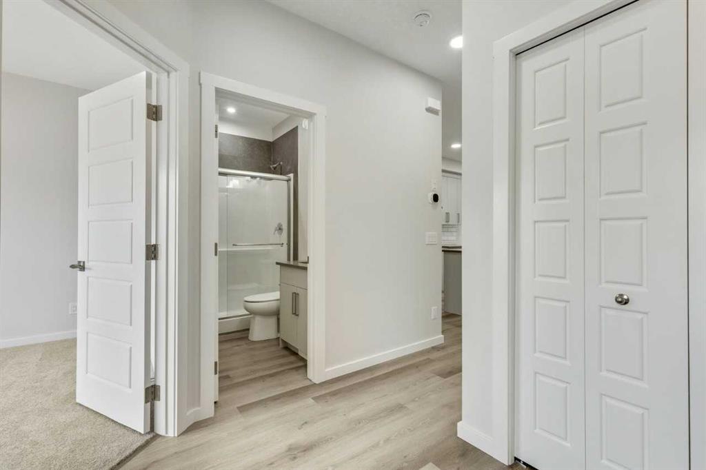 This stunning home combines style, functionality, and smart living. A separate side entrance offers direct basement access for potential future development or private use while a main floor bedroom and full bathroom provide convenience. The 9’ basement foundation, elegant metal spindle railing, and added windows create a bright, spacious feel. The kitchen features a chimney hood fan, ceiling-height cabinetry, and soft-close doors and drawers, complemented by premium finishes like a fireplace, knockdown ceilings, and a frosted pantry door. The ensuite and bathrooms include dual undermount sinks, and a concrete garage pad with curb walls is ready for a future garage. Plus, enjoy Smart Home Technology with thermostat, video doorbell, and front door lock—at no extra cost. Located in the vibrant Heartwood community of SE Calgary, you’ll love being steps away from the Seton YMCA, South Health Campus Hospital, and premier shopping, with unmatched convenience right at your door.