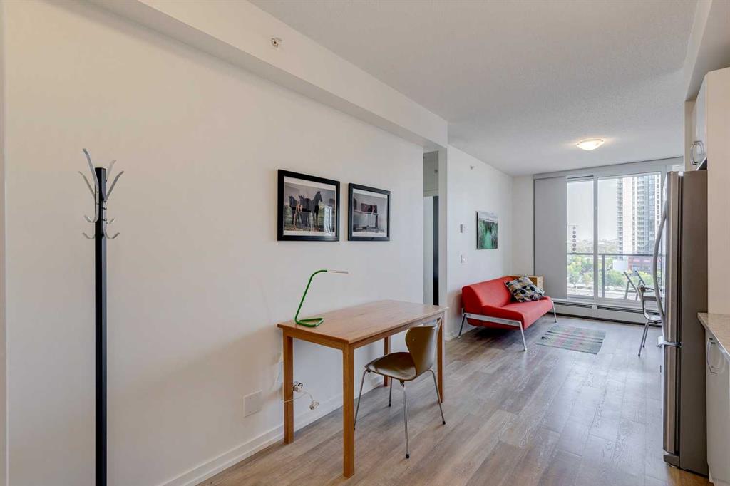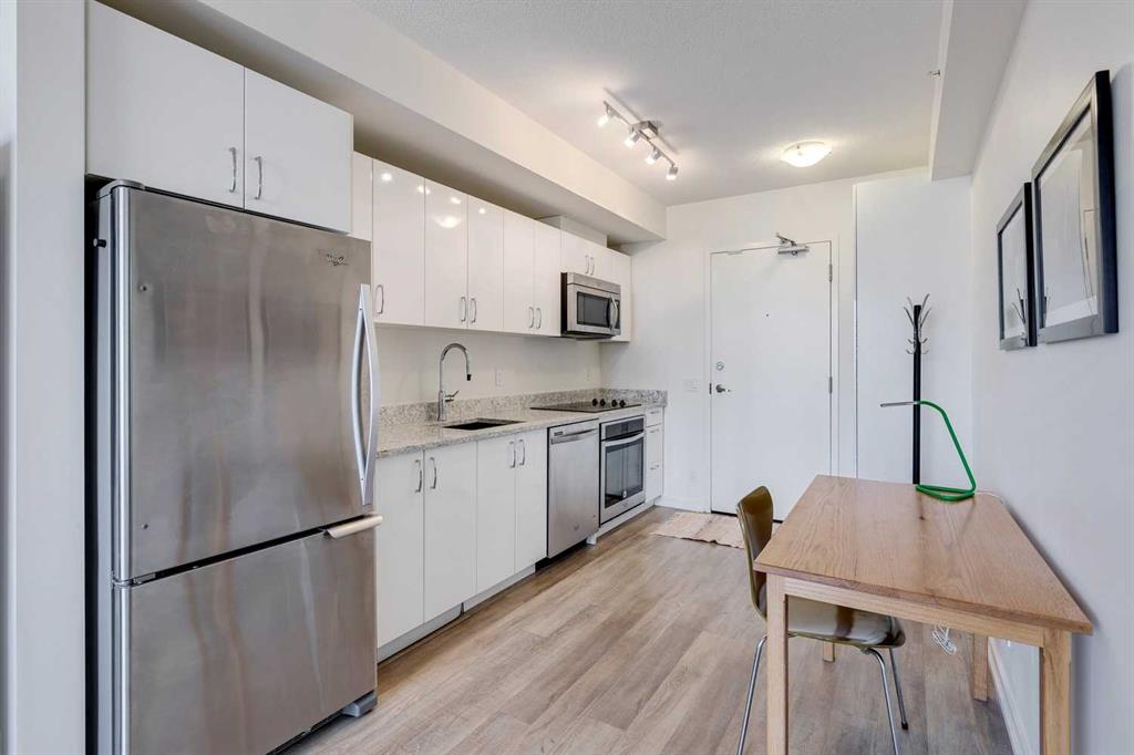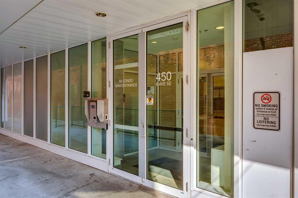 Ideally located within the complex, this unit shares only one wall and enjoys unobstructed east-facing views. The functional floor-plan is thoughtfully designed, feeling much larger than the square footage suggests. The galley-style kitchen provides ample prep space & storage, complete with an upgraded appliance package featuring a stainless steel fridge, electric cooktop, & built-in wall oven—perfect for the home chef. A euro-style washer/dryer combo is discreetly tucked behind sleek white cabinetry. The open-concept living area flows seamlessly onto the east-facing balcony and offers plenty of room for both a media setup and office space. The spacious bedroom boasts floor-to-ceiling windows with north and west exposures, while the four-piece bathroom is finished with granite countertops and a functional layout. N3 is known for its outstanding amenities: the entire top floor is dedicated to work and wellness & includes a co-working hub with cozy cubicles ideal for working from home, a two story fitness area with a cardio area with treadmills, bikes, and indoor rowers, & a lofted strength-training space outfitted with free weights, multiple benches, & machines. Access the massive wraparound rooftop terrace with multiple seating areas, fire pits, and a built-in BBQ—perfect for soaking in views of the new Central Library, Stampede Grounds, & the upcoming new Calgary Flames arena. Cyclists will appreciate the state-of-the-art bike storage designed by Bow Cycle, including raised sliding racks and a dedicated bike maintenance area. A large storage locker is also included. With a Walk Score of 94 the location is convenient to literally all amenities with the LRT station, Central Library, and all the exciting shops and amenities of the East Village just steps away. As the neighbourhood continues to grow, East Village has become one of the most desirable addresses in Calgary’s downtown core. Call today for more information or to schedule your private showing!