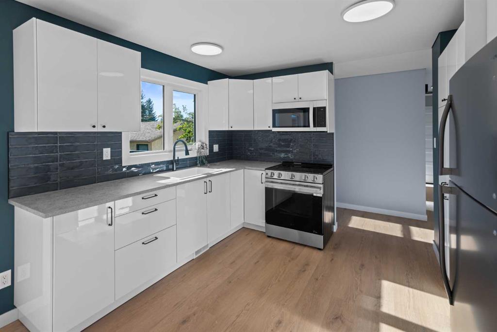 If you are looking for a truly move-in-ready home on an oversized (beautifully landscaped) lot, in an awesome location - look no further. This beautiful four-bedroom home feels like a new build, some of the extensive upgrade include vinyl ceiling, new windows, floors, kitchen, furnace, upgraded bathrooms, paint, appliances, new deck with Dec-tec vinyl, all new electrical outlets and substantial landscaping including new 6-foot fence, walkways and new sod. The main floor of the home features are very private concept kitchen/dining area and a beautiful new kitchen, as well as two good size bedrooms and a beautiful four-piece bathroom. Downstairs you will find two large bedrooms, a three-piece bathroom and beautiful rec room with bar area. The very private and spacious backyard offers a huge brand-new deck, new 6-foot fence, lots of maturities an oversized single car garage and additional parking. This one really offers the full package, and all this in a very solid after, beautiful and quiet neighbourhood close to schools.