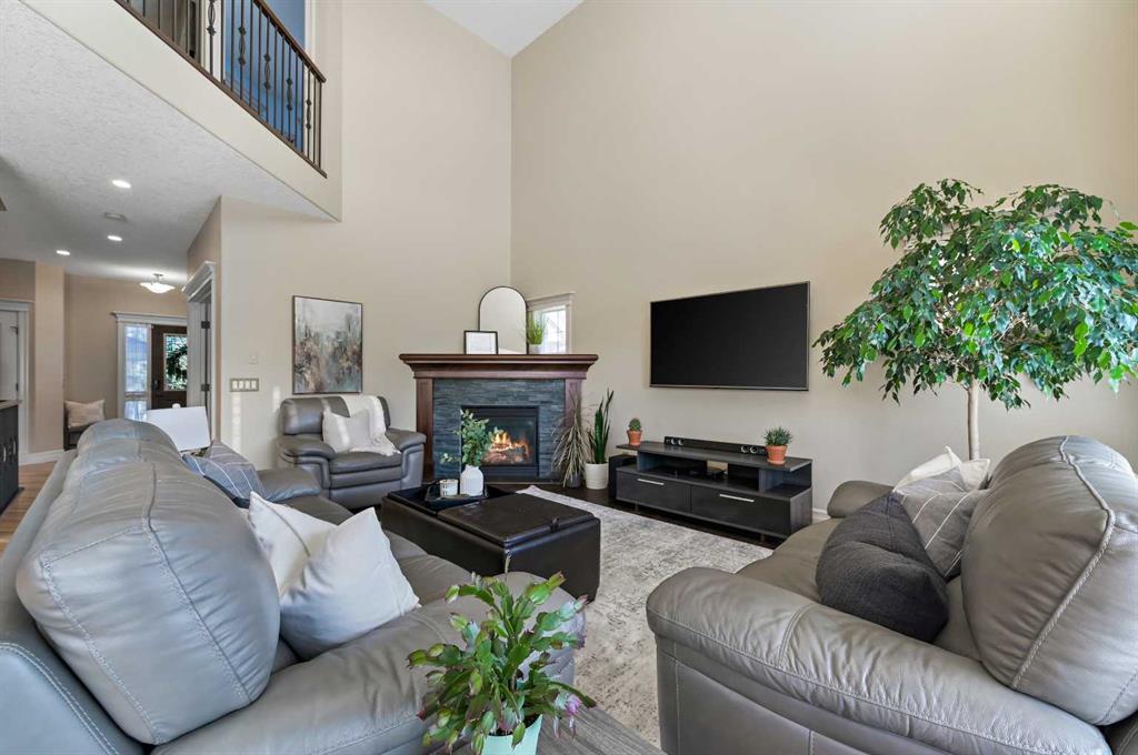 Executive Walkout Home in Coopers Crossing! Discover a home designed for both family living and entertaining in this highly sought-after community, perfectly positioned on a quiet cul-de-sac and backing directly onto walking paths and green space enjoying a sunny south exposure. This executive walkout property offers a rare combination of privacy, functionality, and luxury upgrades throughout. The open concept main floor features soaring ceilings, maple hardwood flooring, a gourmet kitchen, butler’s pantry, gas fireplace, and central A/C. The living room is anchored by dramatic floor-to-ceiling windows extending to the upper level, flooding the space with natural light. The kitchen is as functional as it is stylish, with granite counters, stainless steel appliances, a large center island, and a walk-through butler’s pantry for added storage. The dining area, surrounded by southwest exposed windows, opens to a large rear deck which is perfect for hosting or enjoying tranquil views of the park. A private den/home office and mudroom complete this level. Upstairs, a sweeping curved staircase leads to the luxurious primary retreat, featuring a spa-inspired 5-piece ensuite and a custom walk-in closet. This level also includes two generous bedrooms, a full bathroom, and a convenient upper floor laundry room. The fully developed walkout level expands the living space with a spacious rec room, corner fireplace, games area, wet bar, full bathroom, and an additional bedroom. Step outside and you’ll find a beautifully landscaped southwest-facing backyard (complete with irrigation system) offering sun-filled afternoons, privacy, and direct access to pathways and green space. A covered hot tub area adds the perfect spot to unwind year-round. Additional highlights include a heated double garage, fully finished with insulation, drywall, and epoxy flooring. Beautifully maintained, this home reflects exceptional pride of ownership and is sure to impress. Book your private showing today and experience all that Coopers Crossing has to offer.