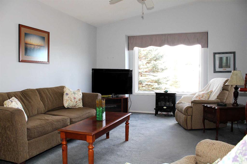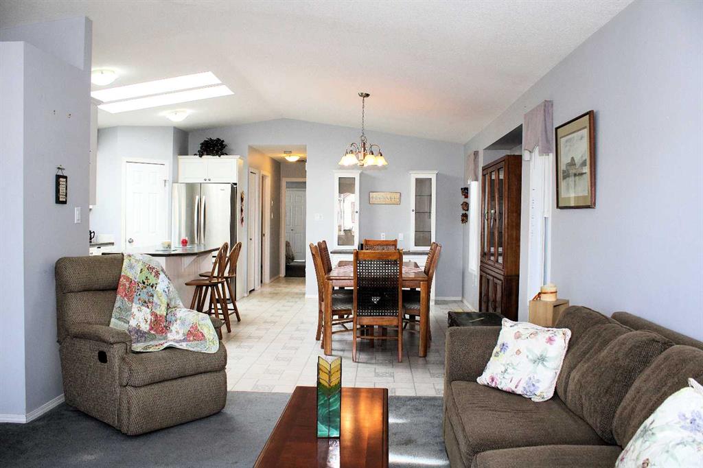Located in a quiet, family-friendly neighbourhood, this property provides easy access to nearby walking trails, schools, shops, and restaurants. Residents benefit from the peaceful setting while remaining close to all of Sundre\'s key amenities. Noblefern Way is designated for modern modular residences situated on town-sized titled lots, free from condominium or strata fees. Lot #24 offers a spacious, pie-shaped configuration with views of the western green space and the added benefit of no neighbouring properties to the rear. The 20-foot-wide, 2-bed, 2-bath drywalled modular home offers the comfort and appearance of a traditional bungalow. One of its best features is the closeted foyer. Here is room to take off your shoes and hang your coat without cluttering the main living area, keeping the entrance organized and welcoming for both guests and residents. The vaulted ceilings add spaciousness, and the large windows bring in natural light. Double skylights in the kitchen brighten the heart of the home, creating an airy, light-filled space perfect for family meals or entertaining friends. A central island provides extra storage space and seating. There is an abundance of crisp white upper and lower cabinetry and counterspace. A huge corner pantry is essential, ensuring that groceries and kitchen essentials are easily accessible and neatly organized. The kitchen is designed to keep family life running smoothly. Modern finishes and thoughtful touches throughout ensure everyday comfort, while ample storage makes this house both practical and stylish. The great layout continues beyond the kitchen and living areas, seamlessly integrating functionality with comfort throughout the home. Adjacent to the main spaces, the rear entry’s stackable laundry and generous storage solutions make household chores efficient and organized. Across the hall is a convenient four-piece bathroom, brightened by a skylight. The second bedroom works perfectly as a flexible space for guests, a home office, or a fitness area, blending with your lifestyle needs. Located at the far end, the primary suite offers a refined living space with an expansive walk-in closet, a dedicated computer workspace, and storage solutions to maintain organization. The ensuite bathroom includes a corner jetted tub and an ample counter area featuring dual sinks. The southwest-facing covered deck and spacious ground-level deck that stretches 32 ft extends the living space outdoors, providing the ideal setting for relaxing in the fresh air. A detached double-car garage provides ample secure parking and additional storage space for your vehicles, outdoor gear, and tools. Easily accessible from the backyard, this versatile structure enhances daily convenience and supports an active lifestyle, whether you need room for hobbies, gardening supplies, or space for a workshop. Its placement complements the overall property, rounding out the home’s appeal with practical outdoor features that make living here AWESOME !!