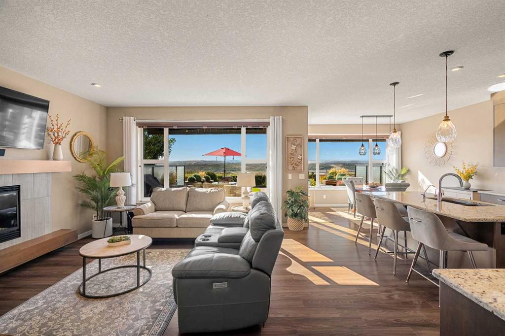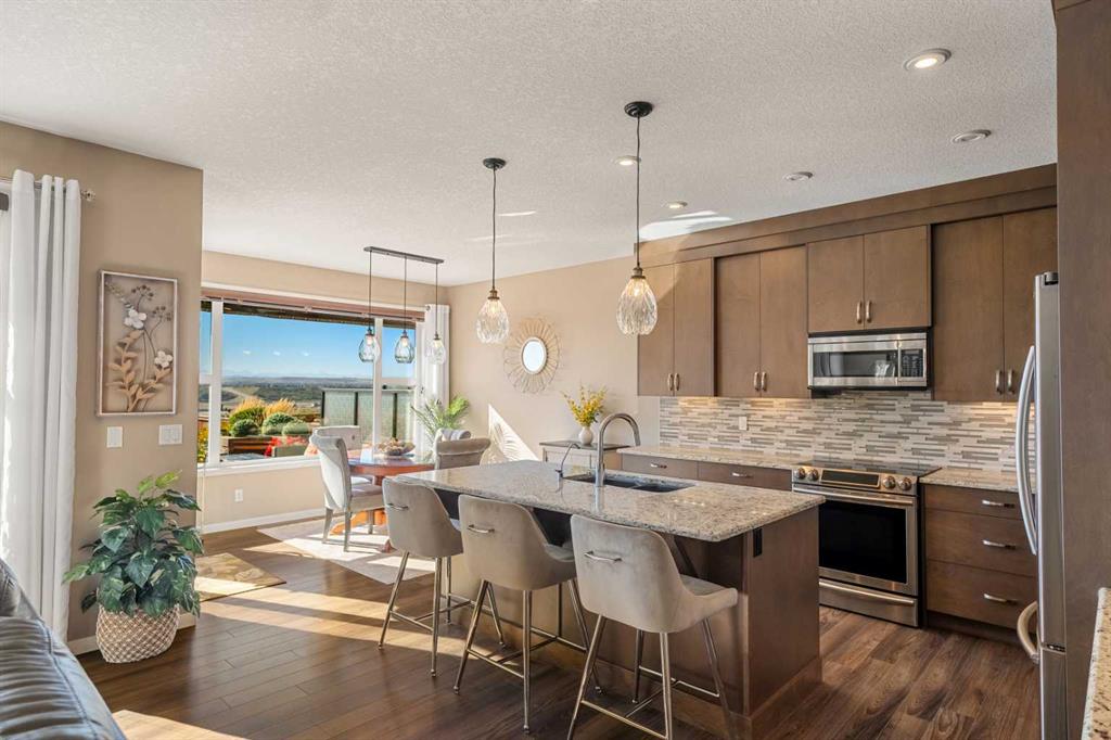 Welcome to 35 Cranarch Terrace – an executive residence in the highly sought-after community of Cranston. Perfectly positioned along Cranston’s Ridge, this home captures breathtaking, unobstructed views of the Bow River Valley, Fish Creek Park and the Rocky Mountains. With direct access to endless walking and biking trails, it offers the ideal blend of natural serenity and urban convenience. Step inside to a bright, open-concept floor plan designed to emphasize space, light and comfort. The main level features soaring ceilings, expansive windows to showcase the panoramic views and a warm living room centered around a gas fireplace. The chef-inspired kitchen is both stylish and functional, complete with granite countertops, rich cabinetry, a large central island, stainless steel appliances, and a spacious walk-through pantry with a built-in dog door that connects seamlessly to the mudroom and garage. A dedicated office space and a dining area that extends to the large low maintenance deck—perfect for morning coffee or evening sunsets! Upstairs, the luxurious primary suite is a true retreat, offering a spa-like ensuite with dual sinks, a walk-in closet with built in shelving, a Mi-Berry Spa Hot Tub and separate shower. Two additional bedrooms, a full bathroom and a versatile bonus room provides plenty of room for family and guests. The upper level laundry comes with custom cabinetry and a drying rack which adds to everyday convenience. The backyard is designed for year round enjoyment, featuring professional landscaping, extra-large composite deck with glass privacy panels, artificial turf, and a private putting green for a low maintenance fun outdoor lifestyle. Additional highlights include an oversized heated double attached garage, Gladiator cabinets, workbench with a matching fridge and central air conditioning throughout the house. All this on a quiet, family friendly location close to schools, shopping, restaurants, the South Health Campus Hospital, and easy access to major roadways. With its spectacular views, elegant finishes, and thoughtful design, 35 Cranarch Terrace SE isn’t just a home it’s a lifestyle. Book your showing today!