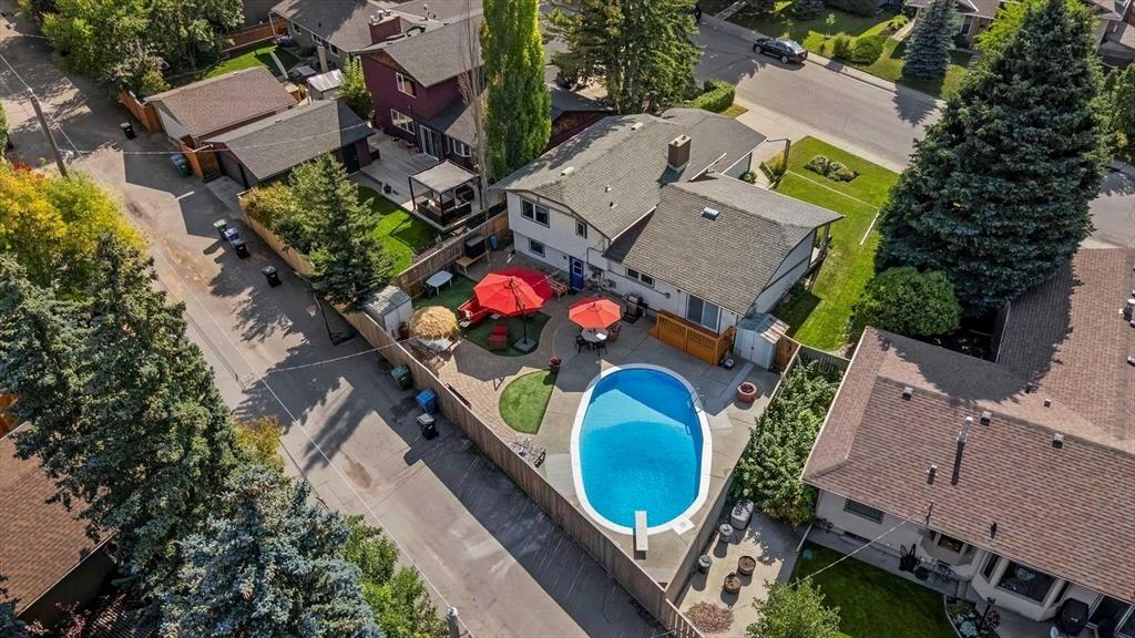 Welcome to your forever home, perfectly nestled on a quiet cul-de-sac in the heart of Lake Bonavista—one of Calgary’s most prestigious lake communities. This beautiful 4-level split home offers the ideal blend of space, comfort, and lifestyle, with 5 bedrooms, 4 bathrooms, and a backyard that feels like your own private resort. Step inside and you’ll immediately feel the warmth and charm of this inviting home. The bright, spacious living room is bathed in natural light thanks to new triple-pane windows and automated drapes, creating a cozy yet elegant atmosphere. It flows effortlessly into the dining room—perfect for hosting holidays or Sunday dinners—with a newer patio door that leads you out to the backyard. The kitchen is both functional and flexible, with room for a breakfast nook or extra cabinetry to suit your needs. Upstairs, the primary suite easily fits king-sized furniture and features his and hers closets plus a private ensuite. Two additional bedrooms and a full bathroom complete the upper level. On the lower level, you\'ll find a warm and welcoming family room with custom built-ins and a brick wood-burning fireplace with gas starter—ideal for cozy nights in. There’s also a fourth bedroom, a full laundry room and convenient walkout access to the backyard. And what a backyard it is! Designed for both relaxation and entertaining, it features a heated inground pool, fire pit, raised garden boxes, and low-maintenance artificial grass—so you can spend less time on upkeep and more time enjoying the outdoors. The fully finished basement adds even more versatility with a fifth bedroom (great for a guest room, home office, or gym), a full bathroom, a large rec room, and more storage space. This home has been lovingly maintained and thoughtfully updated including sump pump & exterior paint touch ups (2025), triple-pane windows throughout, patio door, new soffits and fascia (2021), water tank, outdoor pool pump & filter (2020) and two new furnaces (2015)  offering peace of mind for years to come. This exclusive, residents-only lake community offers unmatched year-round amenities—swimming, paddleboarding, kayaking, tennis, and beach volleyball in the summer, and ice skating, tobogganing, snowshoeing, and even ice fishing in the winter. The lake is stocked twice a year, and 52 acres of sparkling water are surrounded by 25 acres of lush green space and mature trees. Enjoy family-friendly events like movies in the park, Stampede BBQs, food truck nights, and seasonal festivals—all just steps from your door.Families will love being close to top-rated schools, including Lake Bonavista School, Andrew Sibbald, St. Boniface, St. Bonaventure, Sam Livingston, Nickle Jr. High and Dr. EP Scarlett High School. With quick access to Macleod Trail, Deerfoot, Stoney Trail, and even weekend getaways to the mountains, this location truly has it all. This is more than just a home- it\'s a lifestyle and it’s ready for you to move in, add your personal updates and start making memories!