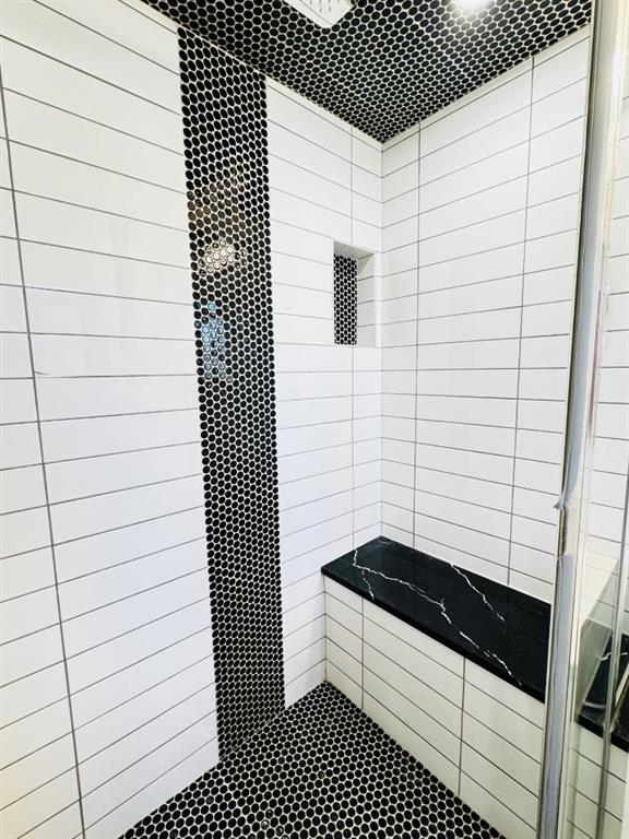 The primary suite is a true retreat, featuring a unique feature wall and an impressive walk-through closet with shelving and dressing table. Prepare to be spoiled in the 4-piece master ensuite, which boasts luxurious black tiling, a semi-recessed double vanity, and a decadent rain shower with six added jets and black penny round accents over black granite. For ultimate comfort, the ensuite also includes heated floors! Completing the main floor convenience is a separate laundry closet with washer/dryer.