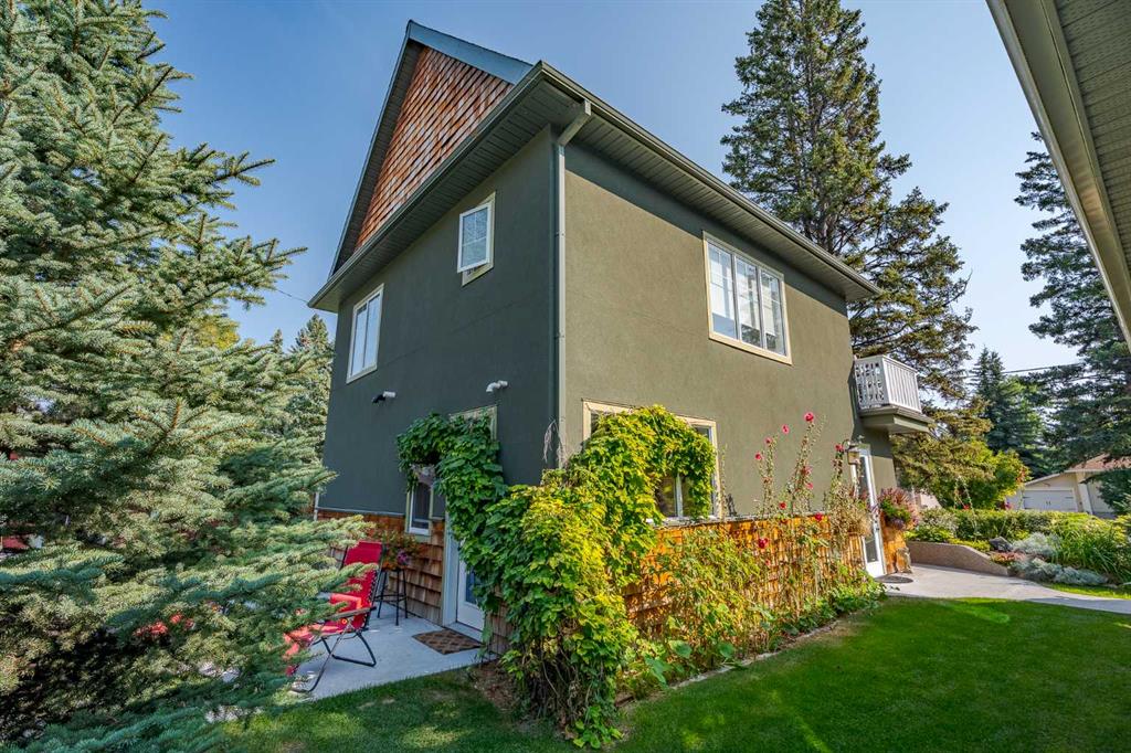 Welcome to one of High River’s most iconic homes-a timeless 1940 Craftsman-style beauty nestled on a rare double corner lot. Just a short stroll from the charming downtown, this heritage property has been thoughtfully & extensively renovated, with a substantial addition completed in 2021 that blends seamlessly with the original architecture. With over 4,100 square feet of developed living space, this home offers the perfect balance of historic character & modern comfort. Every detail of this renovation was done with care, preserving the charm of the original structure while elevating the home with contemporary upgrades. At the heart of the home, you’ll find a custom-designed kitchen surrounded by rich millwork, exposed brick, & sun-filled living spaces. The cozy living room, complete with a gas fireplace & period-inspired detailing, invites you to unwind & enjoy the character that only a home of this vintage can offer. One of the most remarkable features of the addition is the use of 120 year-old Douglas Fir hardwood flooring, sourced to blend perfectly with the original hardwood-a detail that speaks to the exceptional craftsmanship & care taken in every element of this renovation. The home features 3 bedrooms and 4.5 beautifully finished bathrooms. The primary bedroom is a true retreat, offering peaceful views & convenient access to the back of the property. The ensuite is luxurious & functional, with heated tile floors, a double vanity & a large tiled walk-in shower. Off the generous walk-in closet, you\'ll find a conveniently located laundry area. A standout feature is the expansive loft space, with soaring vaulted ceilings, offering endless potential—whether used as additional bedrooms, a home office, or private gym. The fully developed basement includes another inviting living area, a wet bar for entertaining, a second gas fireplace, & ample room to relax or host guests. Outside, the property truly shines. Mature trees, lush gardens, & curated landscaping create a sense of privacy & peace, like your own private park. A heated koi pond adds a tranquil touch & the wrap around covered porch provides the perfect place to sit & enjoy the surrounding beauty.The saltwater hot tub provides a luxurious way to unwind, while the whimsical “She Shed” in the garden offers a quiet retreat. The stunning legal carriage suite is located above the triple detached garage. Just under 700 sq ft, cathedral ceilings, a full bathroom, huge balcony, & oversized windows that flood the space with light, this one-bedroom legal suite feels like a peaceful sanctuary-ideal for guests, extended family, or tenants. Schools & the hospital are nearby, making this home as practical as it is picturesque. Whether you\'re seeking a quiet lifestyle, small-town charm, space to grow, or a truly unique & character-rich place, this home offers something extraordinarily special. Residences like this rarely come to market—it’s a piece of High River history lovingly restored & ready for its next chapter.