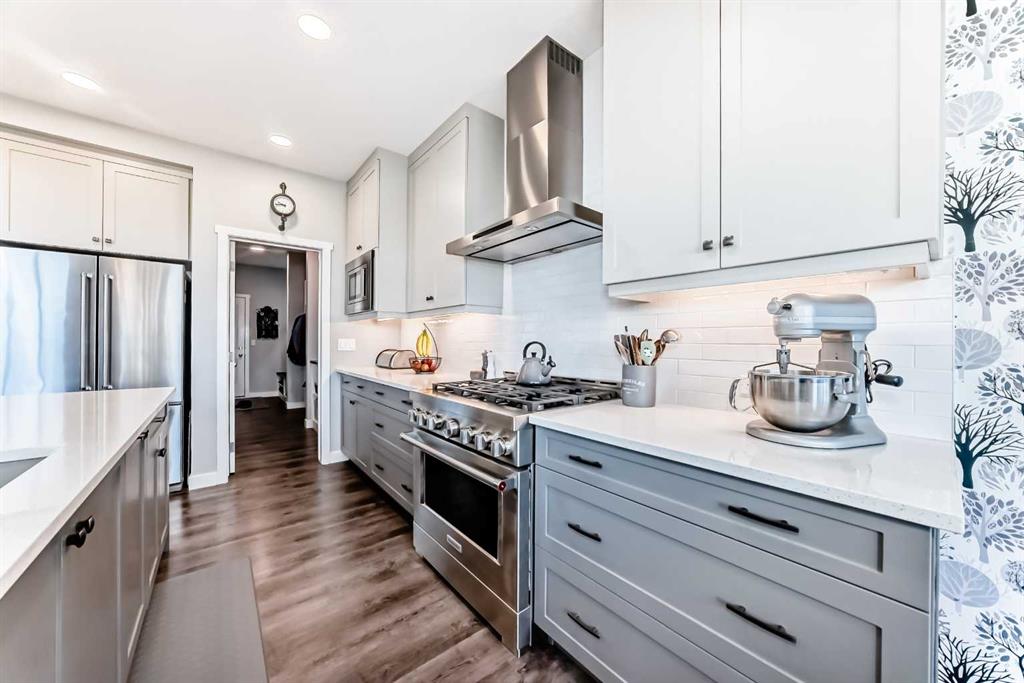 Upstairs, a convenient laundry area features a countertop, and a built-in drying rack, enhancing the home\'s functionality. The bonus room boasts vaulted ceilings, creating an airy atmosphere while also offering scenic mountain views. All the bathrooms have quartz countertops with under mount sinks. The 4 pc primary ensuite features a fully tiled oversized shower and a dual vanity.