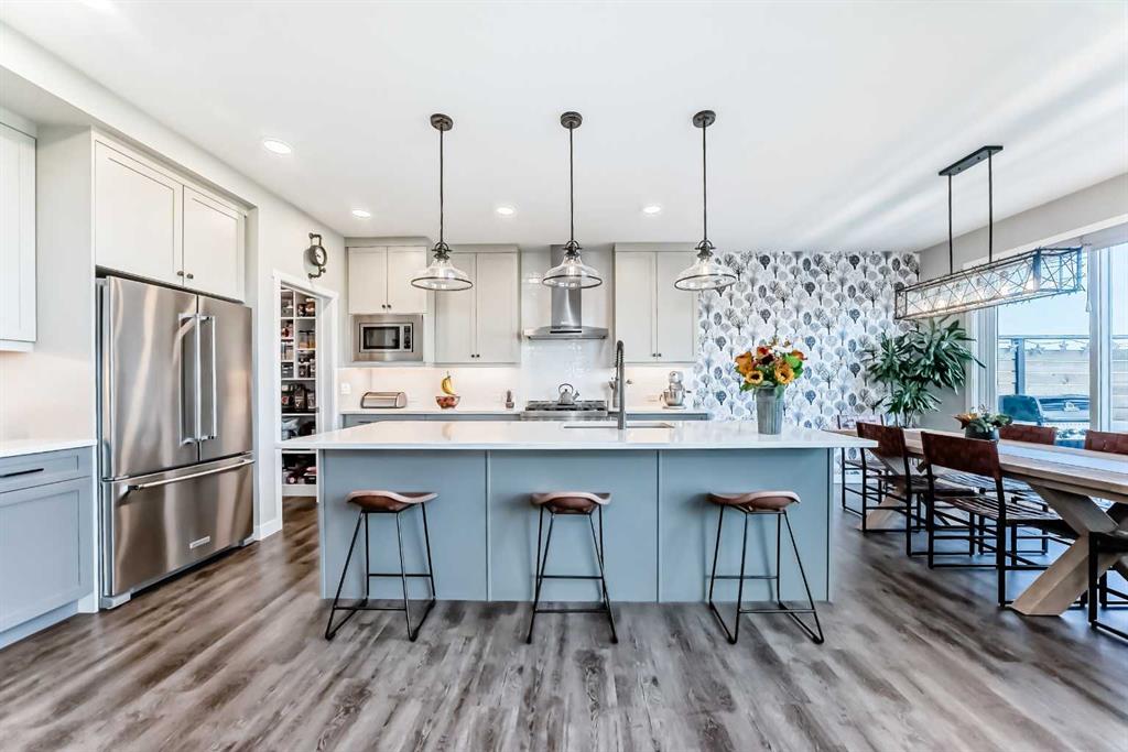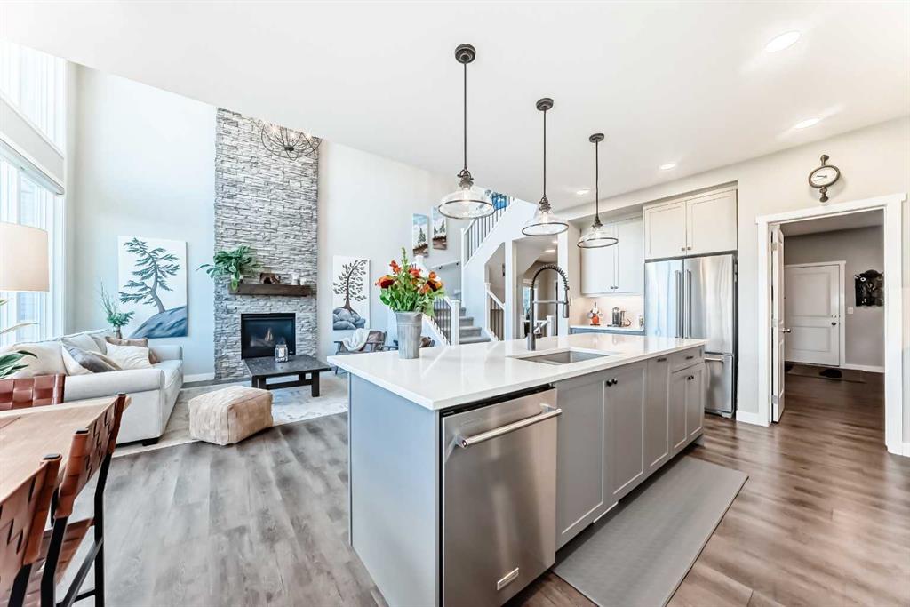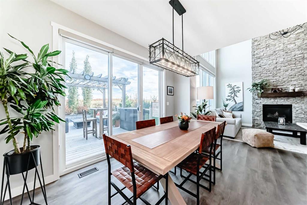 ** OPEN HOUSE SAT OCT 18TH 1-3PM **. 204 Sunrise Common is a remarkable home and offers over 2,100 sq ft of beautifully designed living space. It features a heated garage with an extended area, complete with a workshop space, an 8Ft door, a sink with hot and cold water access, and a separate side entrance for convenient yard access. The lovely backyard backs to a future walking path and green space, featuring a fantastic deck with a pergola, a built-in bar table, a gas hookup for a BBQ, and a fire table, making it perfect for outdoor gatherings.