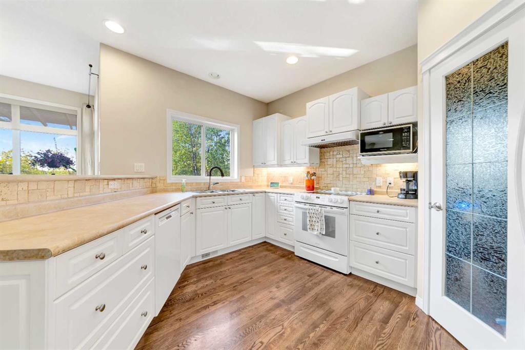 Nestled amongst mature trees, this beautiful 2004 bungalow sits on a total of 4.8 acres just 3 minutes from Sandy Beach and only 20 minutes from the City of Lloydminster. The home’s welcoming entrance leads you into the open floor plan. Attractive and recently refinished hardwood floors feature throughout the main floor living area. The large South facing windows bring natural light into the space and highlight the stunning views of the outdoors. Family and guests can sit at the eat-up kitchen peninsula, gaze out at the gorgeous green space from the dining room or, they can put their feet up in the living room in front of the wood fireplace that is accented by beautiful stone work. The primary bedroom is a comfortable retreat with a large 3-pc ensuite bathroom and walk-in closet. The main floor also has a second bedroom, which is currently set up as an office with a murphy bed. There is a conveniently located 4-piece bathroom and a laundry room with garage access also on the main level. The basement is fully finished. It boasts a fantastic family room with a wood stove, 2 more generous bedrooms, a second kitchen with eating area, a 4-piece bathroom, storage areas and a cold storage room. The outdoor space is spectacular with two-tiered back deck, raised garden beds, fire pit area, lawn space, hedges and trees. You will appreciate taking nature walks on your own property. There is a double attached insulated garage with concrete parking pad and a double detached garage with attached workshop (wood heat). Plus, there are several sheds (with power) on the property for your garden tractors, quads, firewood and tools. There is a cleared area well away from the house that has plenty of room for RVs, trailers, boats and small equipment. Other features of this property include: central vacuum, gutter guards with transferable warranty, two natural gas hook ups on the deck for the bbq, security camera, Starlink and Shaw dish. Water is from a well. Septic is a tank and field. Gutters are set up to drain in barrels. There is a small dugout on the property with plumbing to water trees from the dugout. Call to view this outstanding acreage!