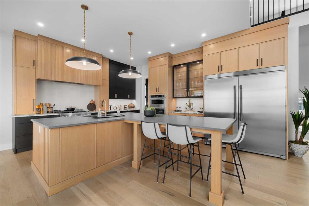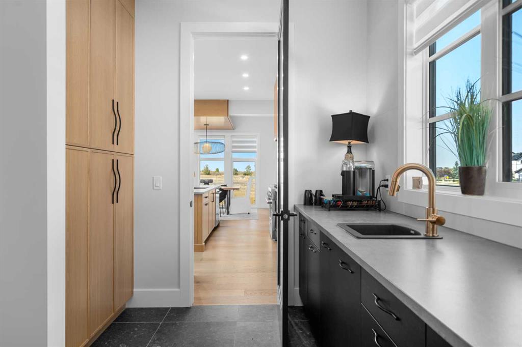 Welcome to the “Aurora” Showhome,  a masterpiece by award-winning builder Cornerstone Luxury Homes (now offered with a finished basement). Thoughtfully designed with intention and purpose, this home strikes the perfect balance of elegance and comfort in the welcoming, family-friendly community of Monterra on Cochrane Lakes, just minutes from the town of Cochrane. Set on a 0.28-acre lot, this stunning two-storey offers over 4,900 sq. ft of refined living space, 5 bedrooms, 5 bathrooms and a triple car garage. A striking mezzanine bridge and expansive windows showcase breathtaking views, while the open-concept main floor creates an ideal flow for family living and entertaining. The great room impresses with soaring vaulted ceilings and a sleek linear gas fireplace. The chef-inspired kitchen features a large center island, custom cabinetry, premium appliances, and an impressive butler’s pantry. Completing the main level are a dedicated office/study, spacious dining area, oversized mudroom, and elegant 2-piece powder room. Step outside to the expansive wrap-around deck, perfect for al fresco dining and unforgettable sunsets. Upstairs, the primary retreat is a serene escape, offering space for a king-sized bed, a spa-inspired 5-piece ensuite, and a custom walk-in closet. Two additional bedrooms, a 5-piece bath, and a light-filled bonus room provide ample space for family and guests.The fully developed basement expands your living space with two more bedrooms, a wine bar, and a comfortable recreation room, ensuring the home is truly move-in ready (basement development is in progress). The oversized, heated three-car garage with epoxy floors easily accommodates vehicles, storage, and recreational gear. Monterra offers an exceptional lifestyle, with tranquil lakes, scenic pathways, and generous lots, while keeping you close to the charm of Cochrane and the convenience of Calgary. Available as a leaseback. Book your private showing today or visit the showhome during open hours to learn all that Monterra has to offer. Showhome Hours: Mon–Thurs 2:00–8:00 | Sat & Sun 12:00–5:00.