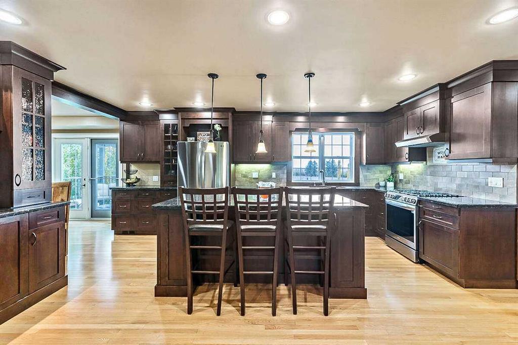 Stunning 17.57-Acre Equestrian Ranch with Bungalow, Cabins & Dream Shop – Just 40 Minutes from South Calgary. Welcome to your dream property—where country charm meets incredible versatility. Nestled on 17.57 beautifully maintained acres, this remarkable ranch offers endless opportunities for horse enthusiasts, business-minded entrepreneurs, or contractors in need of exceptional space and amenities. The 2,372 sq ft (above grade) bungalow exudes warmth and comfort, featuring a crackling wood-burning stove, a cozy gas fireplace, and breathtaking views of the Rocky Mountains. Stay cool in the summer with central A/C, and enjoy a chef’s kitchen designed for entertaining—complete with granite countertops, elegant cabinetry, a spacious island, and abundant storage. With 4 spacious bedrooms and 2 dedicated offices, there’s room for work, rest, and everything in between. The rustic finished separate lower living area, with private entrance offers a peaceful retreat. Step outside and explore a wide array of versatile outbuildings—ideal for storing tractors, RVs, boats, horse trailers, or hay. The main shop is a showstopper, featuring commercial-grade HOTSY car wash system, full drainage, laundry room & lockers. Horse lovers will fall in love with the exceptional equestrian amenities, including 350\' x 150\' outdoor arena, 110\' x 70\' sand arena, 50’ round pen. Three barns with power, heat, and water, two corral systems with continuous metal panels and automatic waterers, tack room with water power and heat. Exercise track and natural spring-runoff creek for year-round enjoyment. The beautifully landscaped grounds feature apple and pear trees, vibrant flower gardens, a 60’ x 60’ vegetable garden, and two greenhouses—perfect for the green thumb in the family. All of this located just 40 minutes from south Calgary, offering the ideal blend of rural tranquility and urban accessibility. This one-of-a-kind property is more than just a home—it’s a lifestyle.