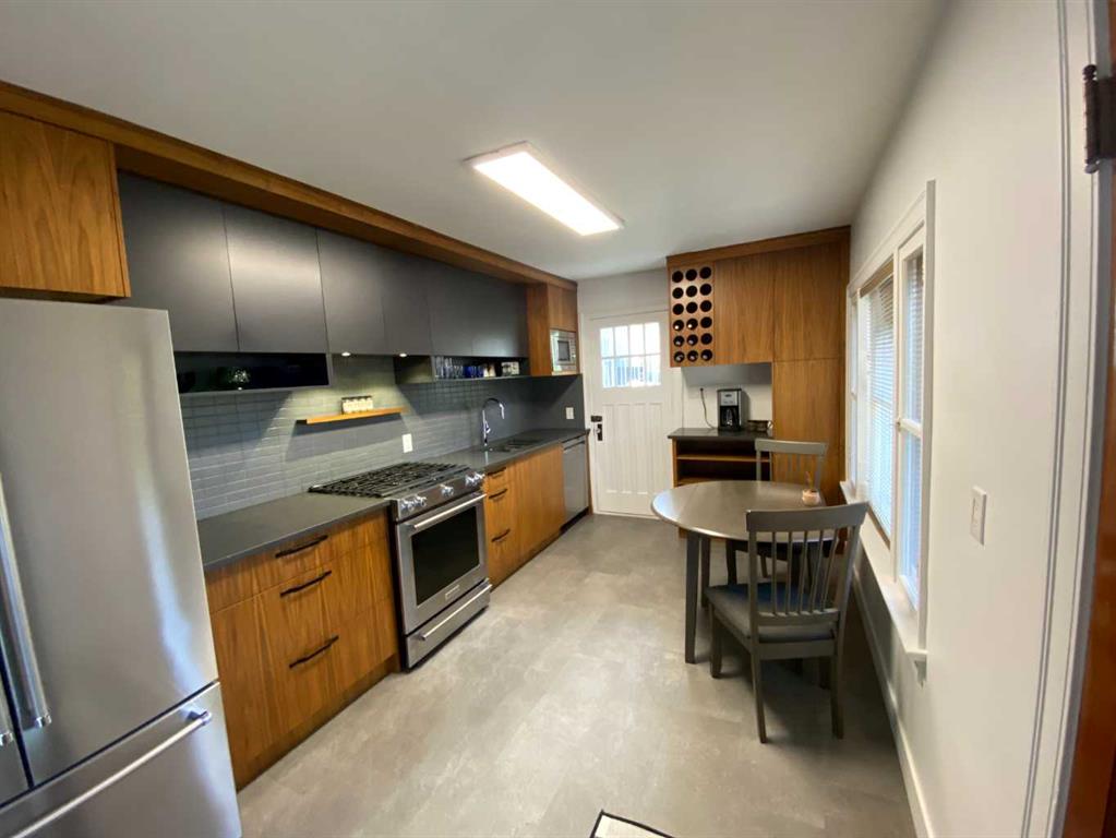 Charming 1945 Character Home with Modern Flair. Step into the perfect mix of vintage charm and stylish upgrades! This one-bedroom home, originally built in 1945, has been extensively renovated with high-quality flooring and an exceptional custom kitchen featuring top-tier appliances. The bright, open kitchen and living room offer a warm welcome with lovely views of the park out front and a private fenced backyard retreat—perfect for quiet mornings or evening get-togethers.
