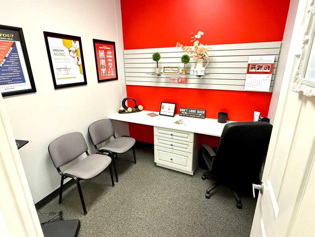 PROFESSIONALLY BUILT OUT OFFICE OR RETAIL SPACE- FOR SUBLEASE until Dec, 2027 w/ 5 year option to renew-This HIGH-END OFFICE/RETAIL UNIT has outstanding visibility & signage opportunities right onto Taylor drive and Ross Street,. A Marquee location right at the Heart of the Heritage Village Shopping Centre. Boasting the following features, this could be your businesses new home: Formerly E-WYN WEIGHT-LOSS, this quality-built out space, boasts 1181 SQ FT and is Turnkey. 30-day possession available! Large main building signage, Large east and west facing windows, 5 offices, Built-in desk/Front Reception, Waiting area and display space with slat wall for retail goods sales in place, Free staff and customer parking, throughout the complex Alarm system, Other Tenant’s in the Complex includes Mcdonald’s, Dental, Law & Dental, Chiropractic officesI, Insurance Brokers And more. NNN\'s are estimated at $13.15./sq.ft. Average power/ gas bills are $325/month with water/sewer averaging $58/month. Total rent is $3,656.18/month +GST/Utilities.