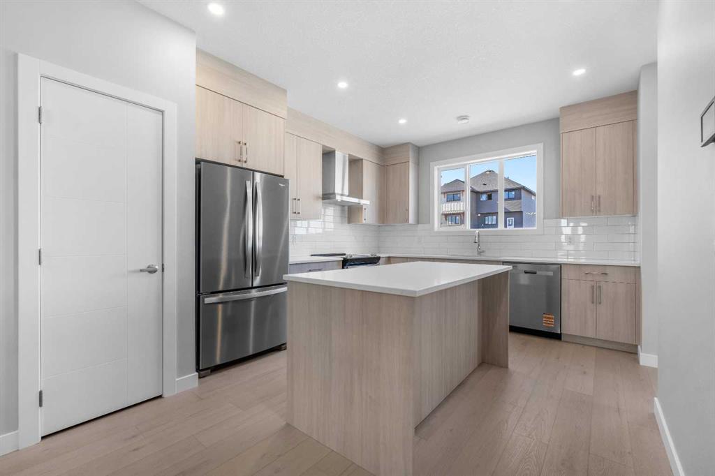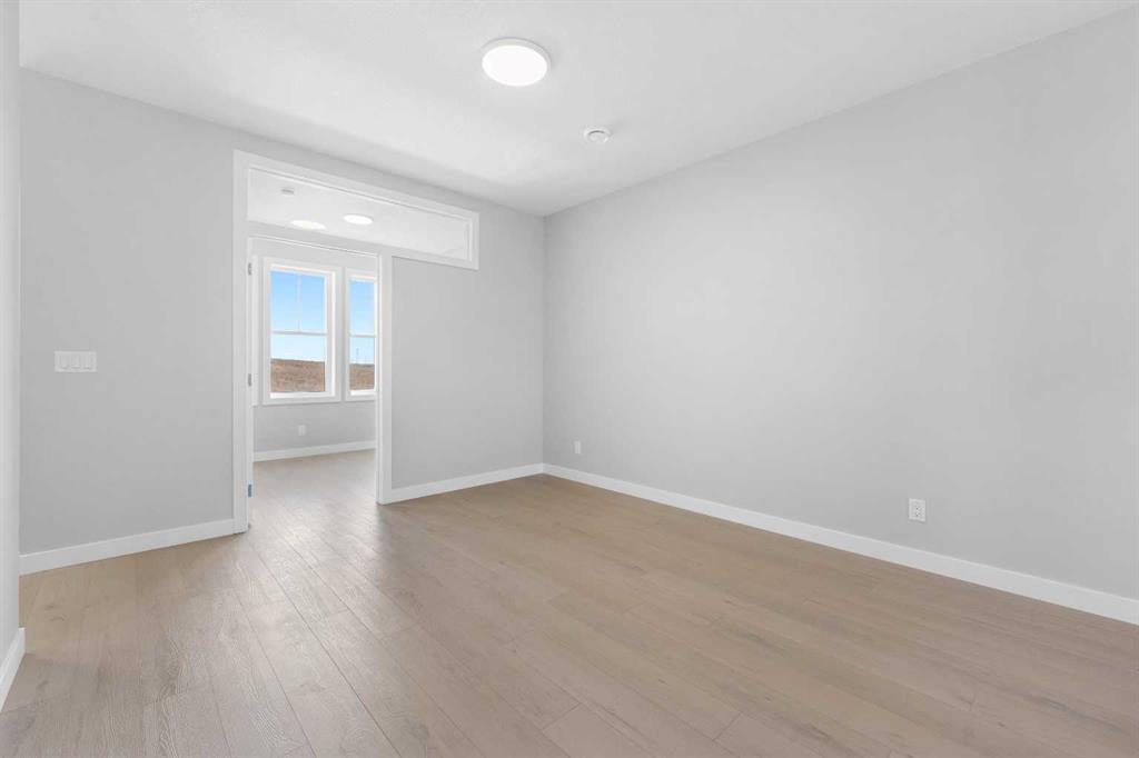 Welcome to the Edward by Partners Homes, located in the new North Calgary community of Keystone Creek. With three bedrooms and three full bathrooms, this newly built quick possession home combines modern style, everyday convenience, and long-term value, and it comes complete with the peace of mind of a new home warranty. The main floor begins with a versatile front flex room that works well as a home office, playroom, or hobby space. An open-concept layout connects the dining and living areas to a spacious kitchen with a large island, gas line for cooking, upgraded hood fan and microwave, and plenty of storage. A rear mudroom provides easy access to the backyard, complete with a BBQ gas line for outdoor living. The main floor also includes a full bathroom with a fully tiled shower, adding convenience and flexibility for guests or multi-generational living. Upstairs, the primary suite features a walk-in closet and an ensuite bathroom with dual vanity sinks, while two additional bedrooms, a full bathroom, a central bonus room, and upper-level laundry complete this level. This home also includes legal suite rough-ins for future flexibility, upgraded quality carpets, front yard landscaping with trees and shrubs, and a full appliance package with fridge, stove, hood fan, microwave, dishwasher, washer, and dryer. A side entrance and a two-car gravel parking pad add even more potential and value. Keystone Creek is a master-planned community in North Calgary where access to everything the city has to offer is at your doorstep. Residents enjoy quieter roads, family-friendly streets, and thoughtfully planned green spaces. The community features pathways connected to the regional trail system, naturalized wetlands, and parks to explore. Everyday amenities are just minutes away, including grocery stores, restaurants, gas stations, childcare, dental and healthcare services, and more. Quick access to CrossIron Mills Mall, downtown Calgary, and the Calgary International Airport makes Keystone Creek a highly connected community while offering a peaceful place to call home. Book your private showing today and see why Keystone Creek is one of Calgary’s most exciting new communities!