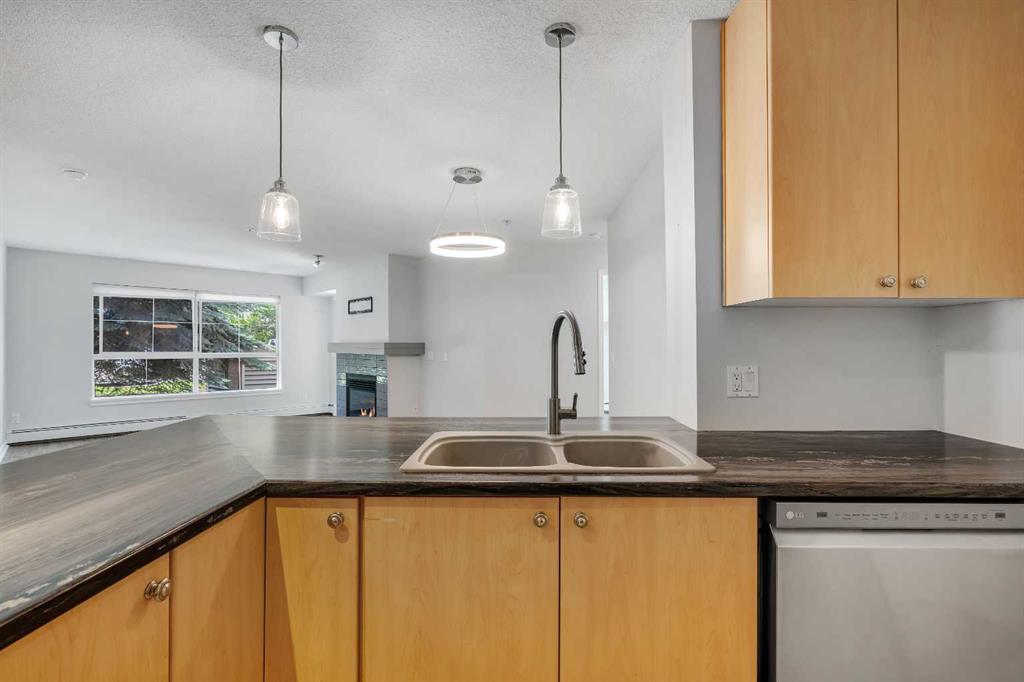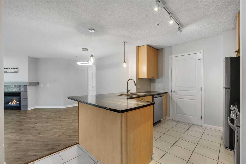 BEAUTIFULLY UPDATED 2 BED | 2 BATH | 976 Sqft | 2 TITLED UNDERGROUND PARKING STALLS | GROUND FLOOR CORNER UNIT | ASSIGNED STORAGE LOCKER. Step into elevated urban living with this updated ground-floor corner residence in the sought-after Laurel House at the Park. Offering 976 sq ft of sophisticated interior space, this 2-bedroom, 2-bathroom home blends modern finishes with thoughtful design. Bathed in natural light, the open-concept layout features new designer lighting, fresh contemporary paint, and elegant touches throughout. The inviting living room centers around a gas fireplace, while the adjacent dining area flows seamlessly into a stylishly updated kitchen, complete with stainless steel appliances, abundant storage, a pantry, and expansive counter space. The primary bedroom includes a large closet and a 4-piece ensuite, while the second bedroom and full bath are perfect for guests. Enjoy the convenience of in-suite laundry and storage, a large patio, and access to great building amenities: car wash bay, fitness room, party room, secure bike storage, and a private courtyard. Unbeatable location near Mount Royal University, schools, shopping, public transit, and quick access to Glenmore & Crowchild Trails. Move-in ready and packed with value!