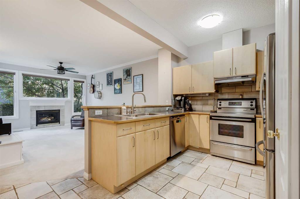 Additional updates include a newer hot water tank, newer washer and dryer, updated fixtures, central vacuum, a BBQ gas line, and low-maintenance living with condo fees covering lawn care, snow removal, and exterior upkeep.