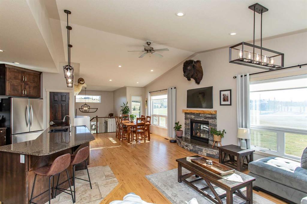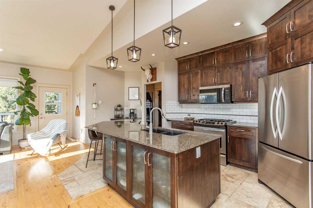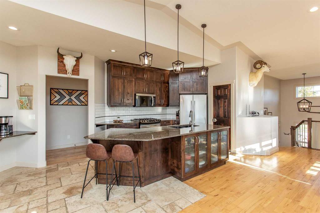 Experience the charm of country living with the added benefit of a nearby lake. This exceptional property spans 2.99 acres, just a short distance from Gull Lake. The home boasts a fully developed main floor featuring an open-concept layout with vaulted ceilings and expansive windows that flood the space with natural light. The dining area is spacious, and the kitchen is a chef’s dream, equipped with stainless steel appliances, a gas stove, a large island, a pantry, granite countertops, and a stylish subway tile backsplash.