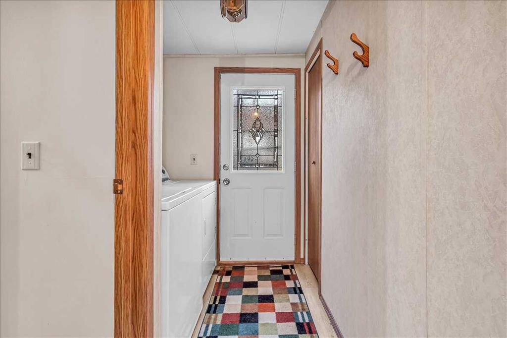 Come check out this beautifully maintained home located in the quaint village of Munson, only a short drive from Drumheller. Set on a generous 9,375 sq ft lot, this property offers ample outdoor space and a peaceful small-town setting, making it the perfect place to call home. Inside, you’ll find a long list of thoughtful upgrades, including newer windows, doors, flooring, and recent renovations to both the kitchen and ensuite. The spacious kitchen is a true highlight, featuring a gas stove, plenty of counter space, and abundant cabinetry including a pantry for all your storage needs. Just off the kitchen, large double patio doors lead to a stunning 430 sq ft west-facing deck, now covered with a new Filon roof—an ideal space for enjoying sunny afternoons or hosting friends and family. The home offers a separate dining area and a large, inviting living room that provides plenty of space to relax or entertain. There are two generous bedrooms, including a very large primary suite. In 2021, a brand new ensuite was added, complete with a gorgeous walk-in shower, adding both style and comfort. A second full bathroom with a tub, along with convenient in-home laundry, add to the home\'s overall functionality. Outside, the property continues to impress with a 24 x 24 detached garage that’s perfect for storage, parking, or hobby projects. There’s also an additional shed for even more storage options. Both the front porch and the rear deck are equipped with ramps, offering easy access for you and your guests. This move-in ready home offers exceptional value, space, and updates in a welcoming rural community. Don’t miss out—contact your favourite Realtor today to arrange a private viewing!