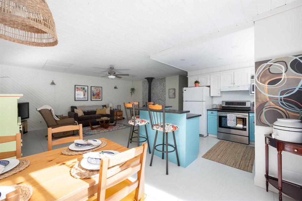 Welcome to 396 Mewatha Drive! A CABIN THAT MELTS HEARTS & TURNS HEADS! This Pinterest-worthy 4-season cabin at Skeleton Lake is bursting with charm and elegance, offering two bedrooms, one full bath, and a den with garden doors for extra guests. Sit Up breakfast nook in Kitchen, vaulted ceilings and a cozy wood stove in the spacious living room. Fully turnkey with fresh paint, beautiful upgrades, a brand-new deck, and a double detached garage, this property is designed for year-round enjoyment and can sleep up to 9 people with the pull out couches that are also included. Located in the sought-after Summer Village of Mewatha, the lake is just steps away with access to boating, swimming, a sandy public beach, cooking shelter, park, and boat launch. The area is perfect for fishing, golfing, quadding, side-by-siding, and soaking up the outdoors, making this cabin the ideal blend of comfort, convenience, and recreation—all at a fabulous price you won’t want to miss! Septic tank 1200 GAL plus Well