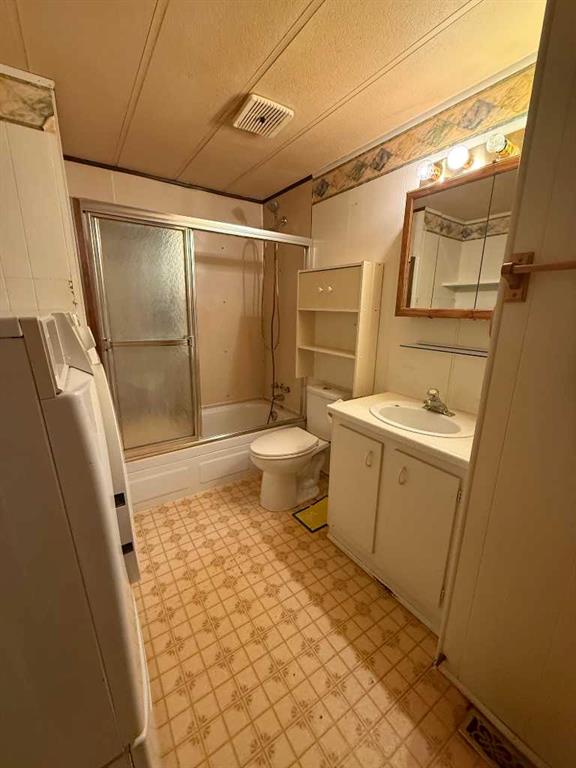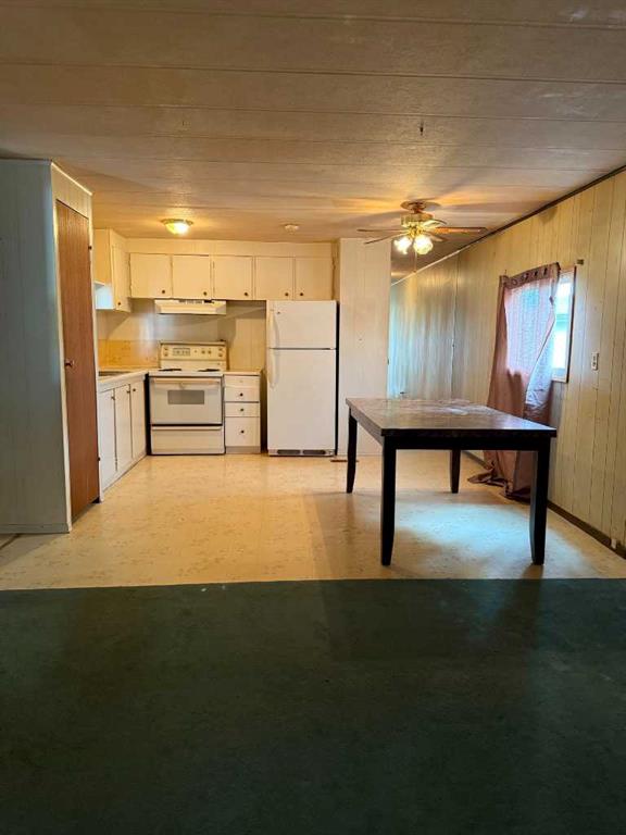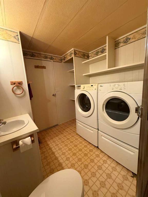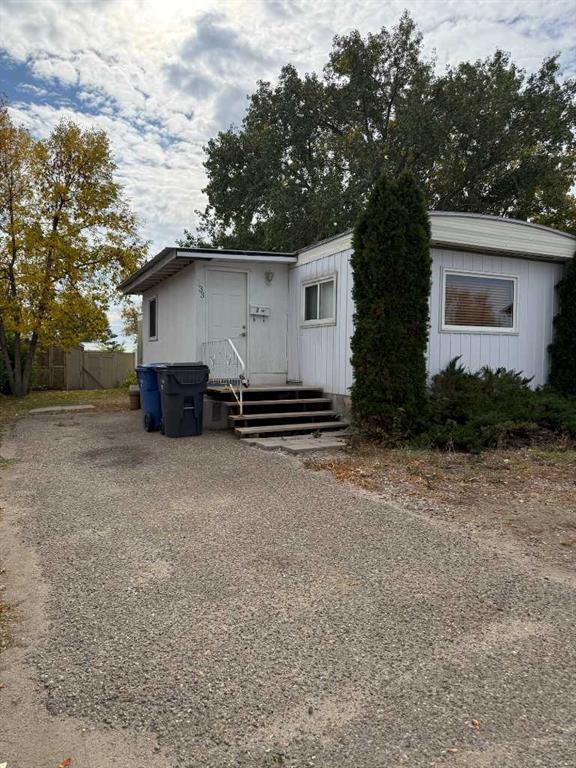 Looking for an affordable option with NO lot fees? This mobile home sits on its own lot and offers an open-concept main living area with a kitchen that includes a fridge, stove, pantry, and dining space. The living room is spacious. There are two good-sized bedrooms and a full 4-piece bathroom with a washer and dryer included. A front porch provides bonus storage space. Outside, there is a partially fenced yard with a parking pad, along with two sheds for extra storage. This property has lots of potential and is a great option for affordable ownership. Call today to view!